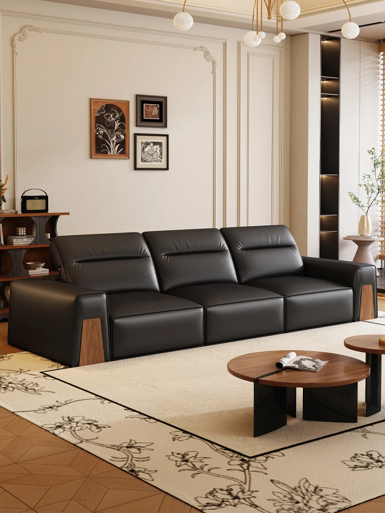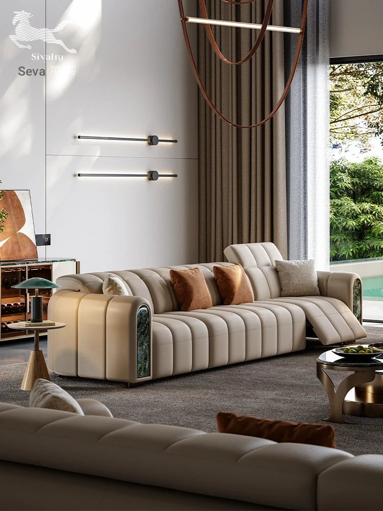 Sevanali Premium Electric Sofa - Luxurious French-Style Straight Sofa for Villa Living Rooms, Full Leather Design for Spacious Homes