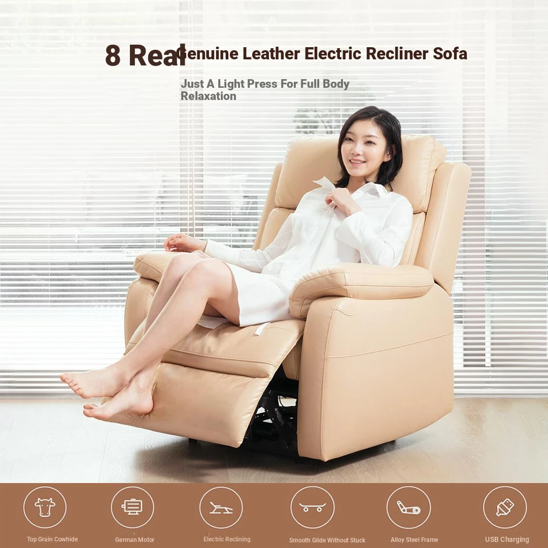 8H SLEEP Genuine Leather Electric Reclining Sofa - Versatile Single Lift Chair for Living Room, Perfect for Home Theater and Nail Art Salon