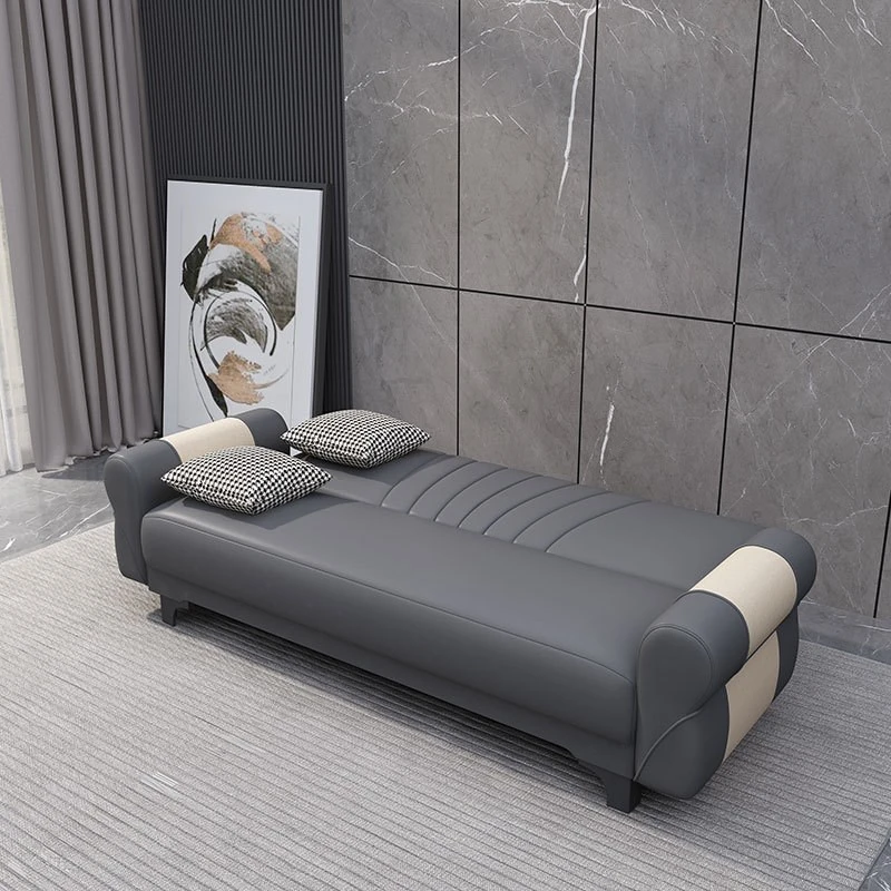 Versatile PU Leather Waxed Sofa Bed for Small Spaces – Stylish Two-in-One Design for Couples and Guests, Foldable and Easy to Set Up!