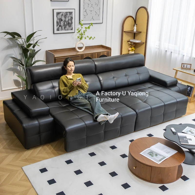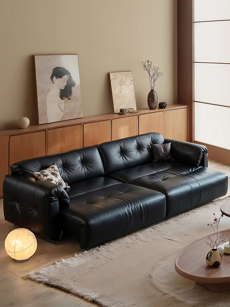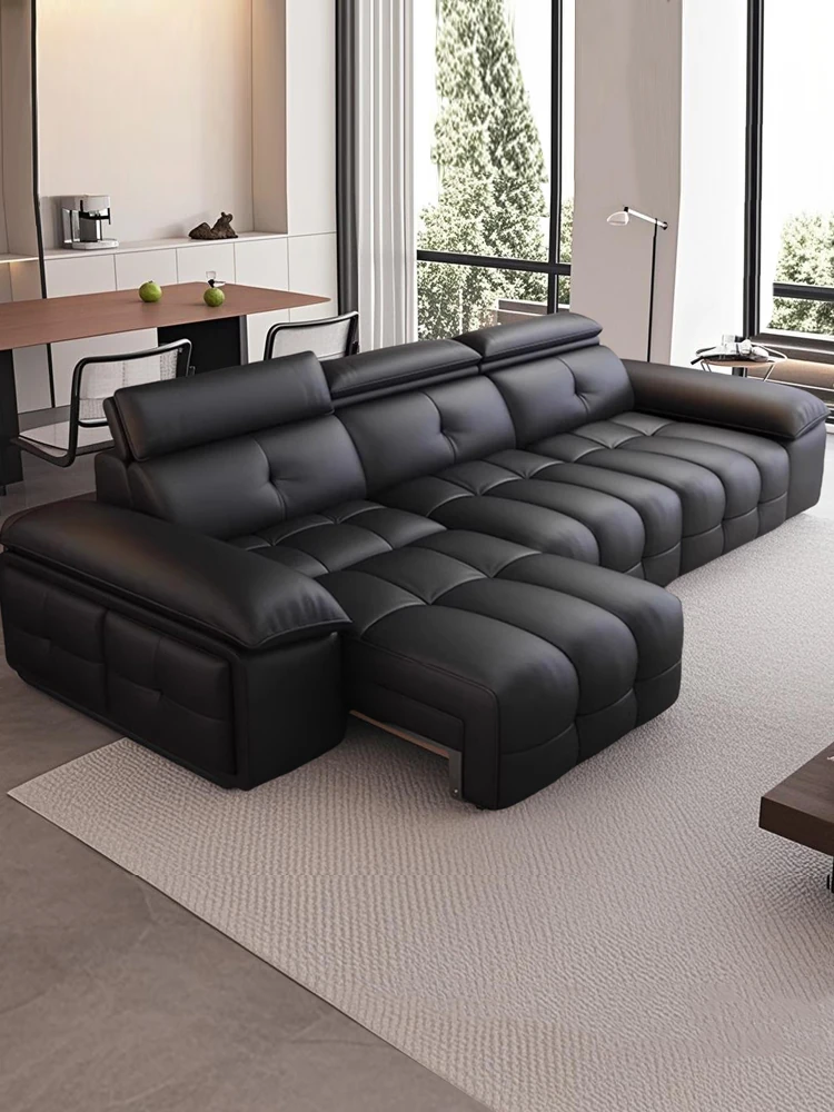 Xatuo Genuine Leather Sofa Bed - Minimalist Italian Designer Black Electric Multifunctional Sofa for Living Room - Perfect Blend of Style and Comfort