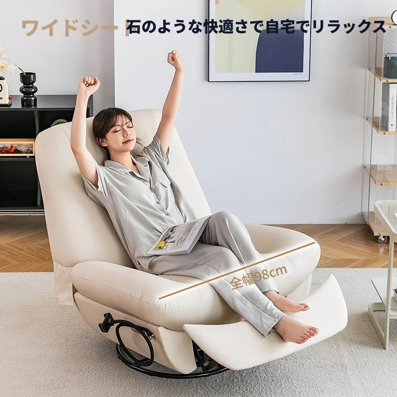 リビング用電動スペースエグゼクティブ多機能本革リクライニング一人用ソファ、揺れるチェアでリラックス&快適な睡眠!調整可能で、あなたのくつろぎタイムをさらに特別に。