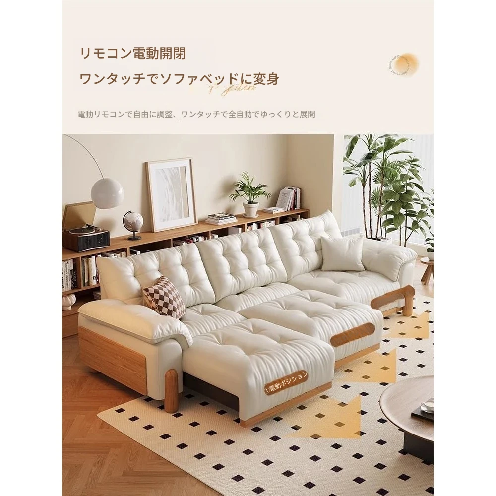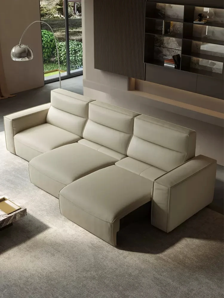 豆腐ブロック本革ソファ 電動伸縮機能付きベッド イタリアンミニマルデザイン 小型住宅向け 本革トップグレード 三人掛け