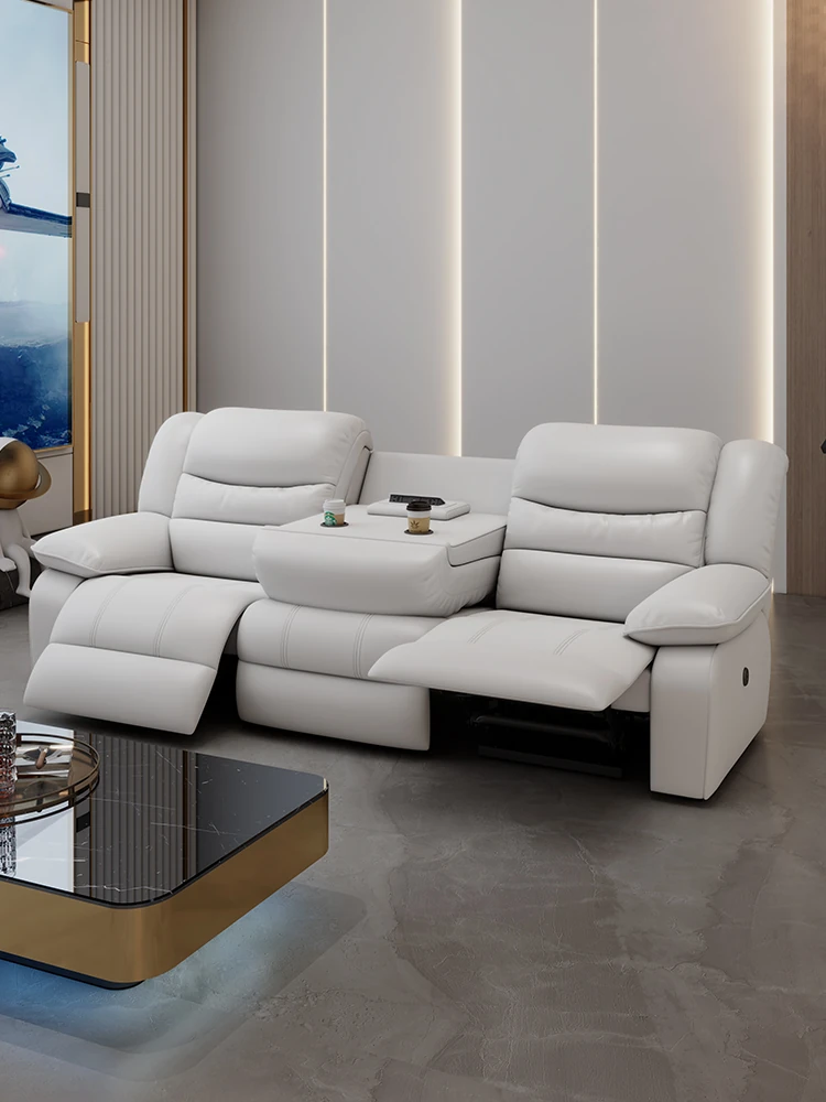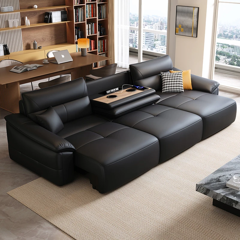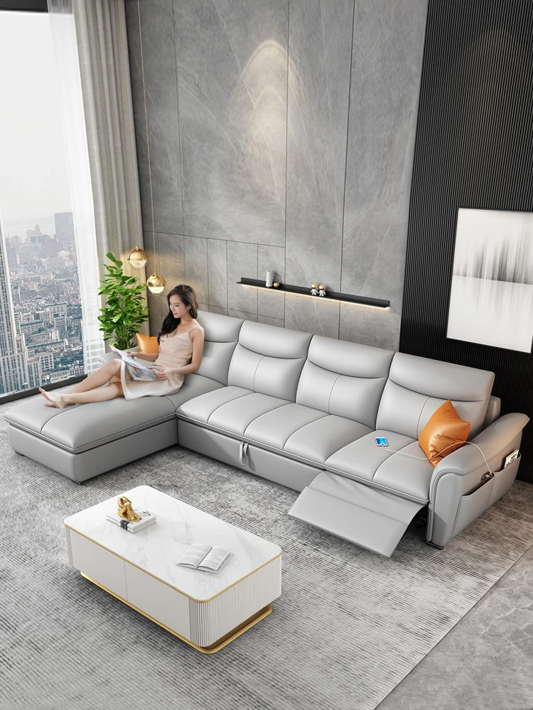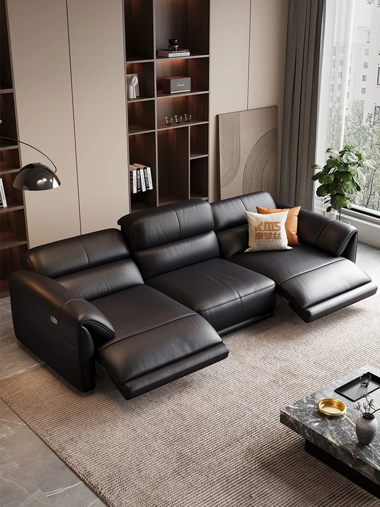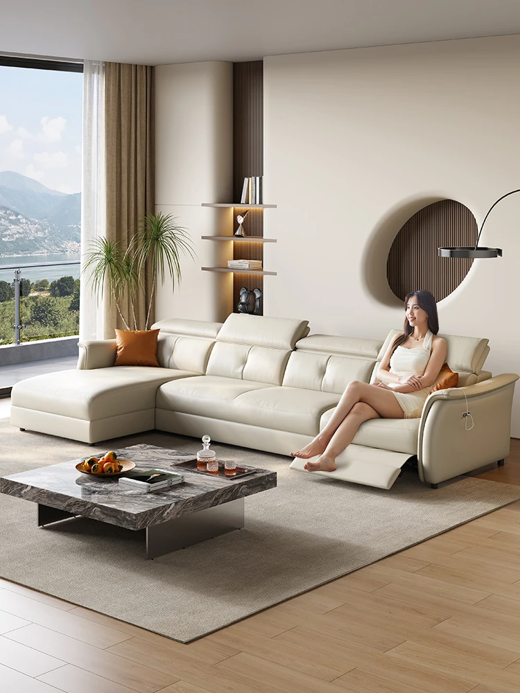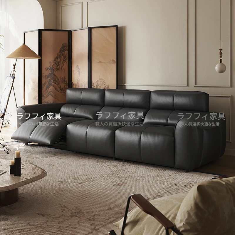 イタリアンミニマルデザインの高級本革電動ソファ - 多機能で大小さまざまなリビングにぴったりなモダンラグジュアリー家具!快適さとスタイルを両立させた一品です。