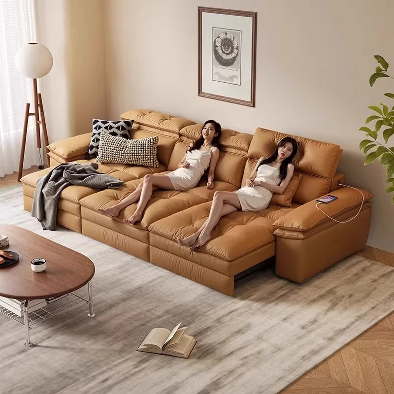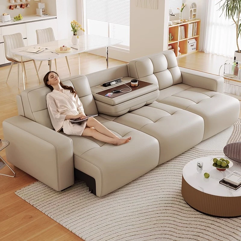 2025年新作!イタリアンデザインの高級レザーソファベッド - リビングに最適な電動多機能ソファ!ベッドにも変形可能で、快適さとスタイルを兼ね備えた一品です。