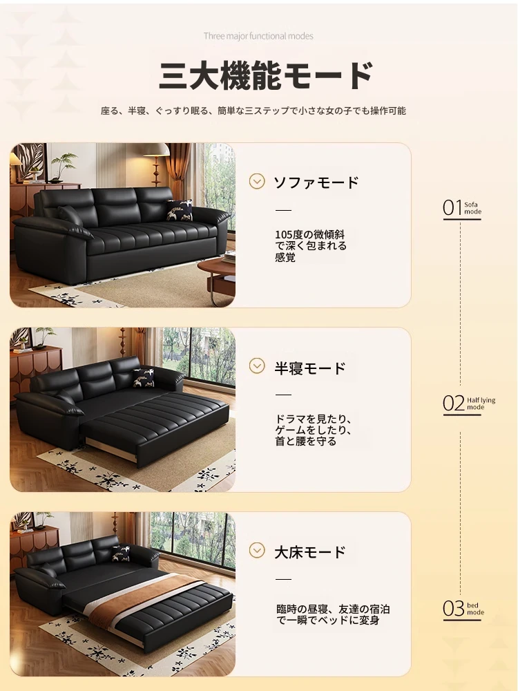 2025年新作!真皮電動多機能伸縮ソファベッド - リビングや小さなお部屋に最適!壁にぴったり寄せられるデザインで、快適な睡眠空間を提供します。おしゃれで機能的な家具をお求めの方におすすめです!