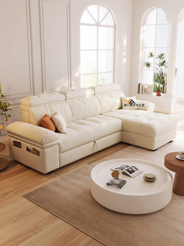 フランス風クリームカラーの多機能収納ソファベッド 2025年新作!小さなリビングにぴったり、折りたたみ式で便利な民宿用ソファ。スタイリッシュで快適な空間を演出します!