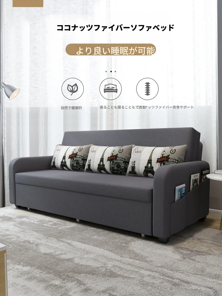 折りたたみソファベッド 2WAY ダブルサイズ 1.8m ファブリック 多機能 小型住宅向け 1.5人用 リビングに最適 収納付き三人掛けソファ