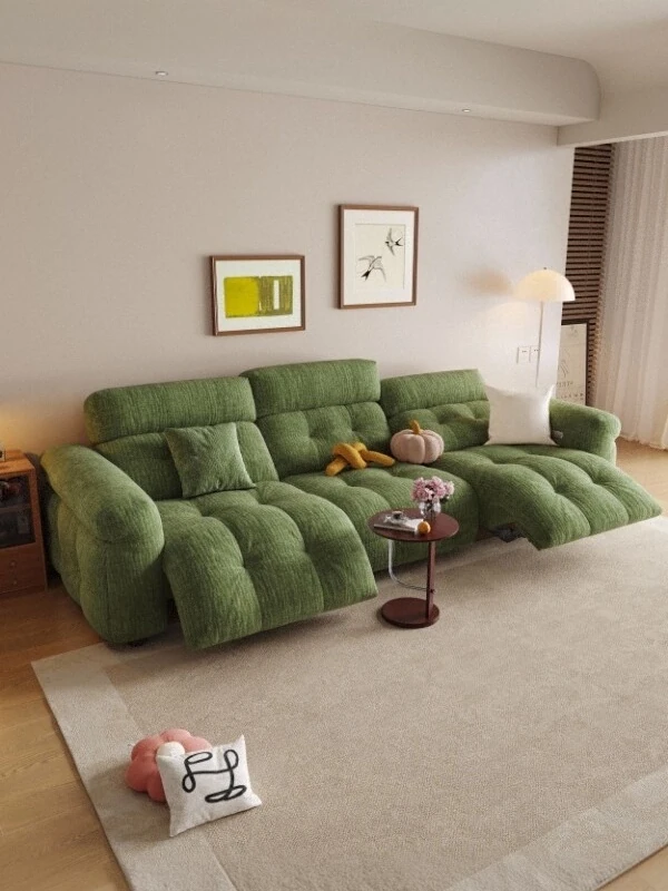 ふわふわマシュマロ機能電動ソファ - リビングにぴったりな小型サイズ!クリーミーなデザインで、調整可能なシェニール生地使用。快適さとスタイルを両立させた、あなたのくつろぎ空間に最適なアイテムです!