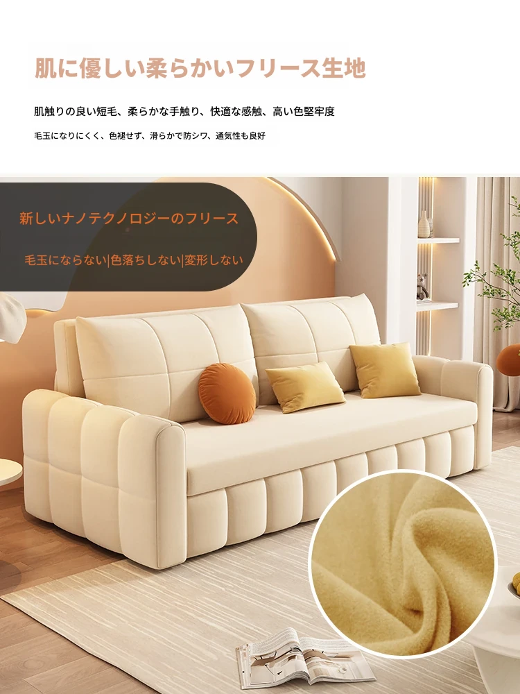 クリーム風ソファベッド 多機能折りたたみタイプ 人気の小型リビング用 2025年新作!おしゃれなデザインで快適な空間を演出!