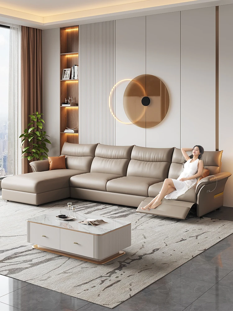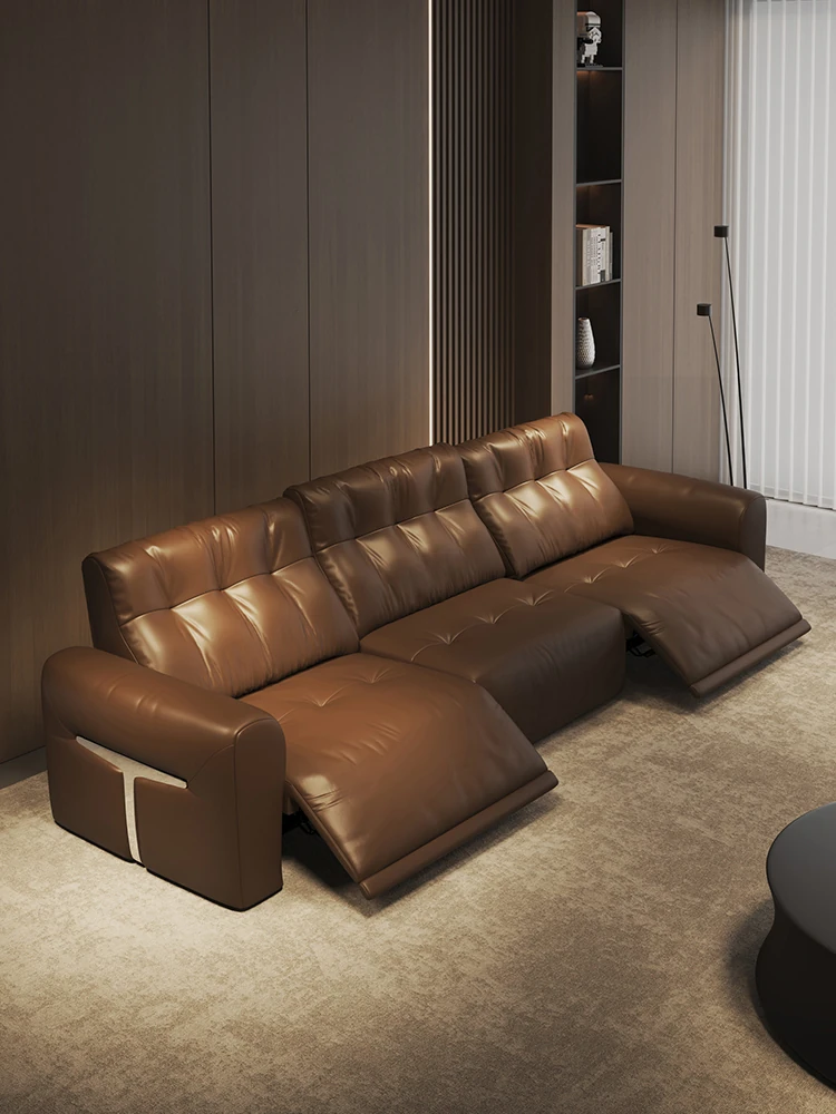 ラウレンス高級リクライニング電動ソファ2025新作!真皮使用の多機能ソファベッドで、直排デザインがスタイリッシュ。快適なリラックスタイムをお届けします。