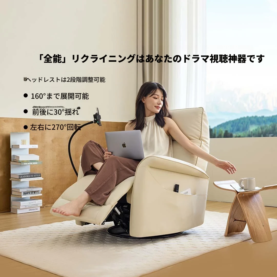 8H 一人用本革ソファ|イタリアンスタイルのラグジュアリーリビング|レザーリクライニングチェア|ワイヤレス充電機能付き|心地よい揺れでリラックス!