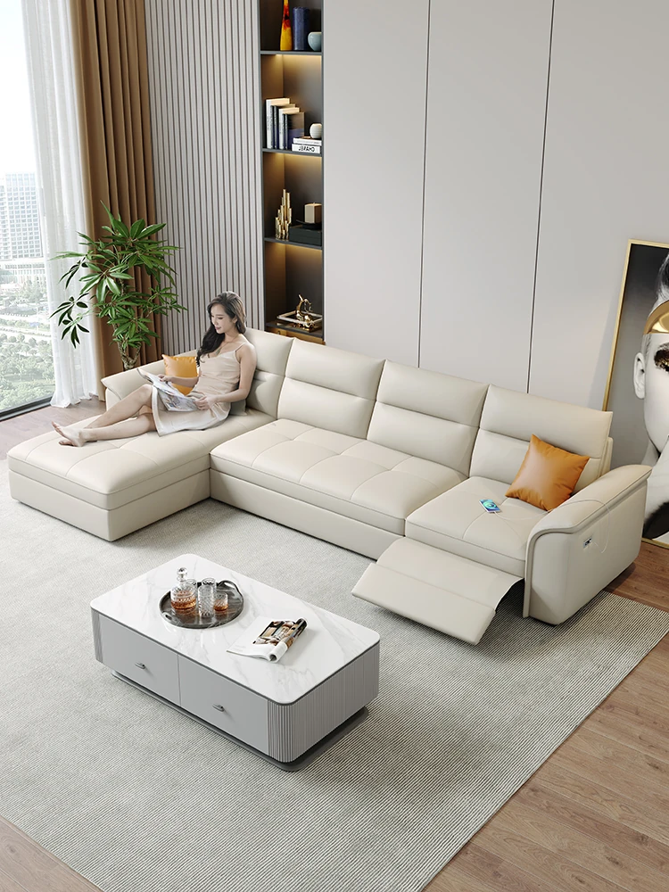イタリアンミニマルデザインの本革マルチファンクション電動ソファベッド - 調整可能なサイズで、3~4人用のコンパクトな組み合わせが可能!快適なリビング空間を演出します。