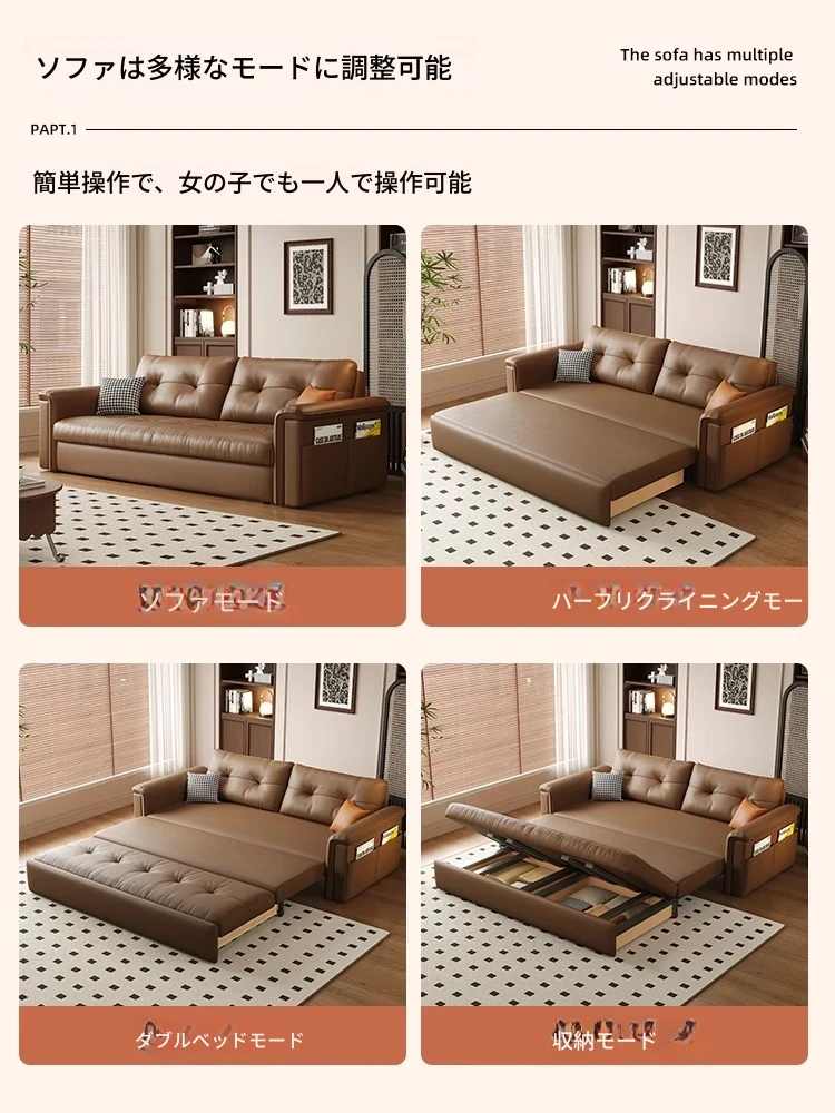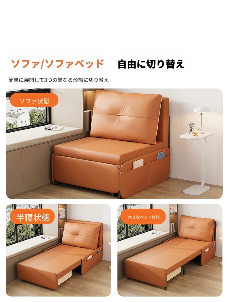 多機能リビング・ベッドルーム用PUレザーオイルワックスソファ!コンパクトサイズで、一人掛けから二人掛けまで対応可能。折りたたみ式で簡単に変形、スペースを有効活用できるソファベッドです!