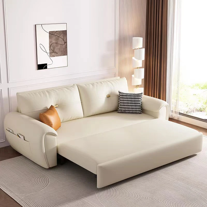 2025 New Italian Minimalist Genuine Leather Electric Multifunctional Sofa – Expandable Two-in-One Sofa Bed for Modern Living Rooms