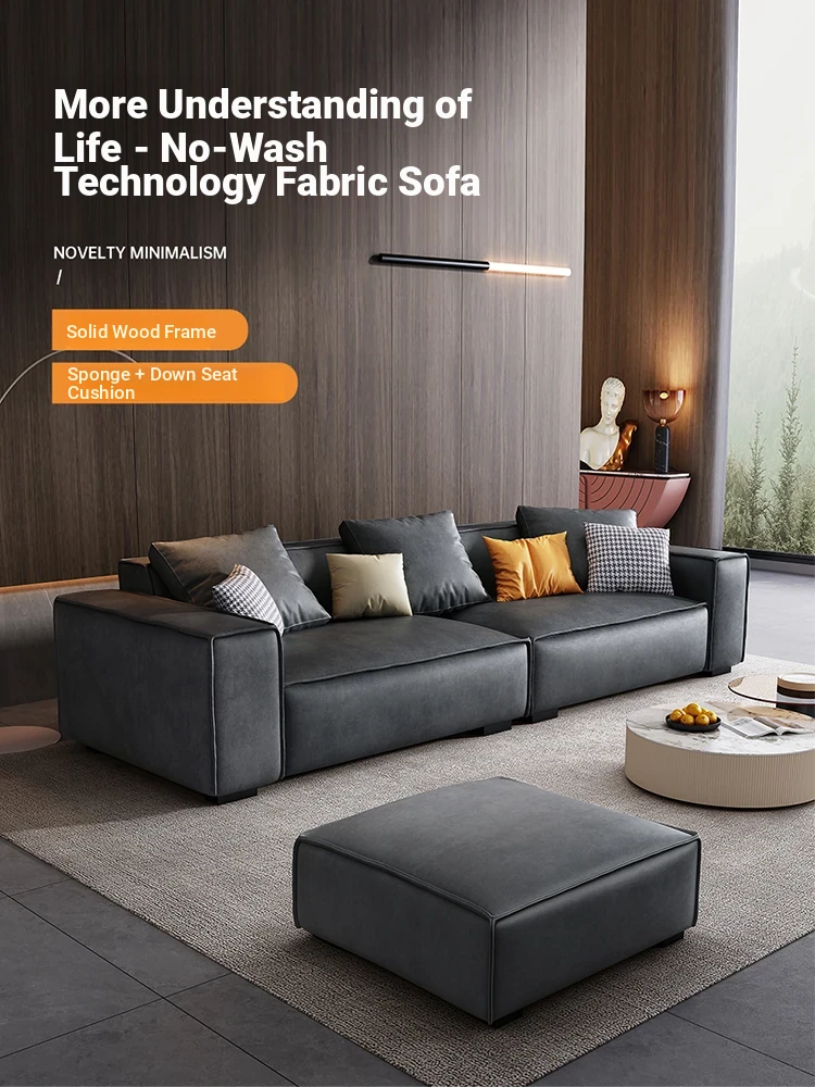 Italian Minimalist Tofu Block Sofa for Small Living Rooms - Modern, Multi-Seat, Straight-Line Design with Easy-Clean Tech Fabric
