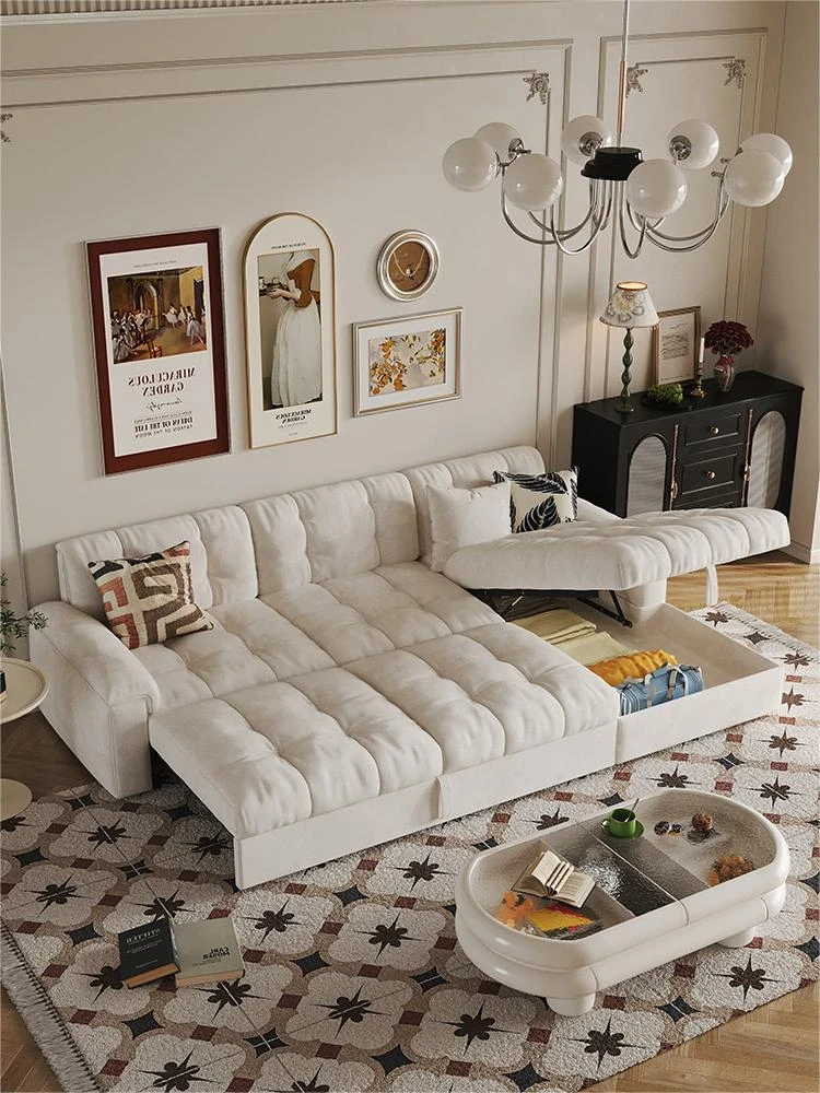 Versatile Foldable Sofa Bed with Pull-Out and Expandable Features - Cloud Sofa in Creamy Style for Trendy Small Living Rooms and Apartments