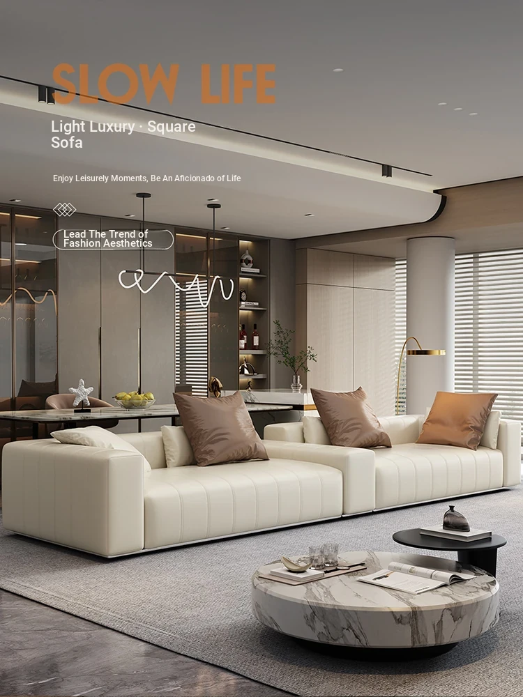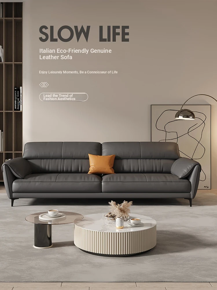 Genuine Leather Sofa - Modern Minimalist Design for Small Spaces, Nordic Style, 3-4 Seater Chaise Lounge Combination for Your Living Room