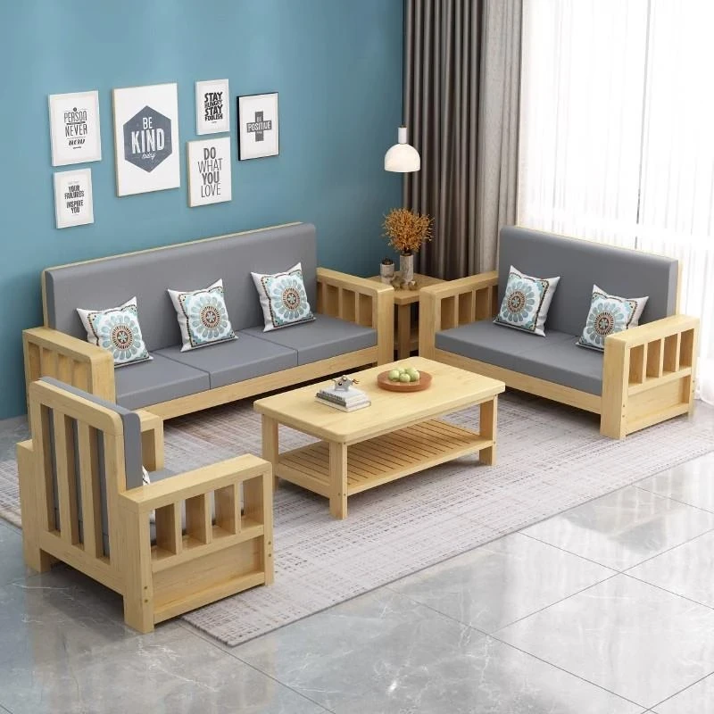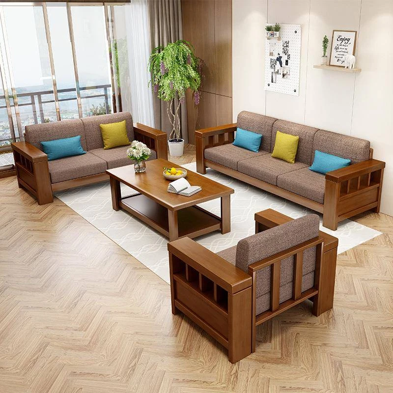 [Free Shipping to Hong Kong] Chinese Style Solid Wood Sofa Set - Minimalist Design for Living Room, Versatile for All Seasons, Perfect for Small Spaces