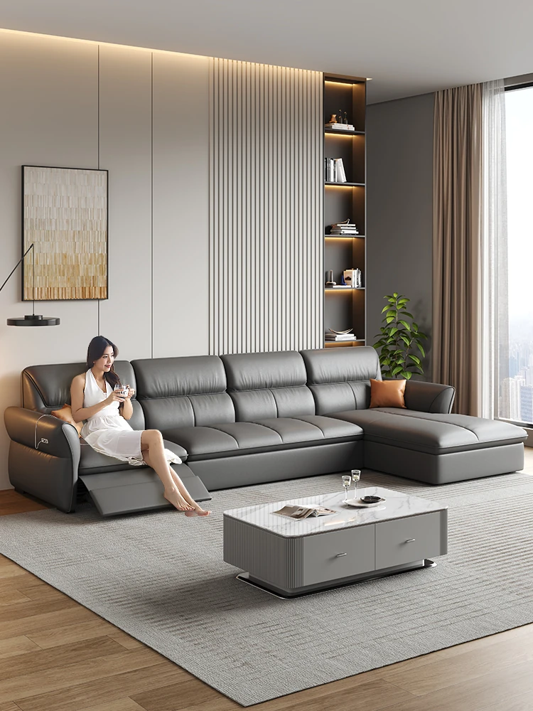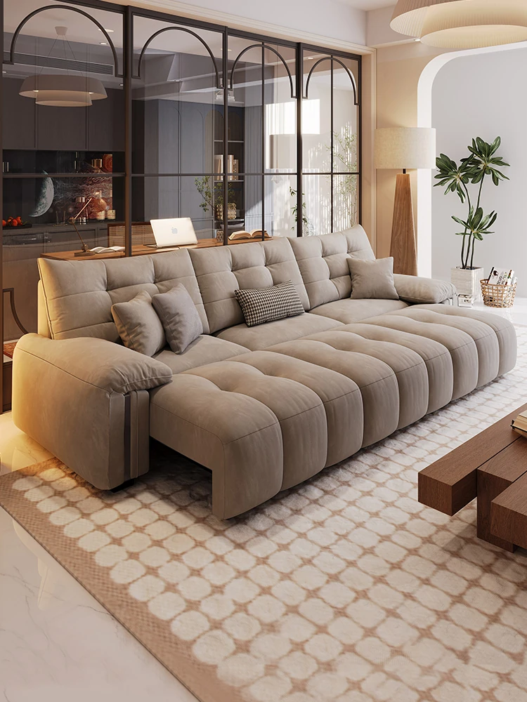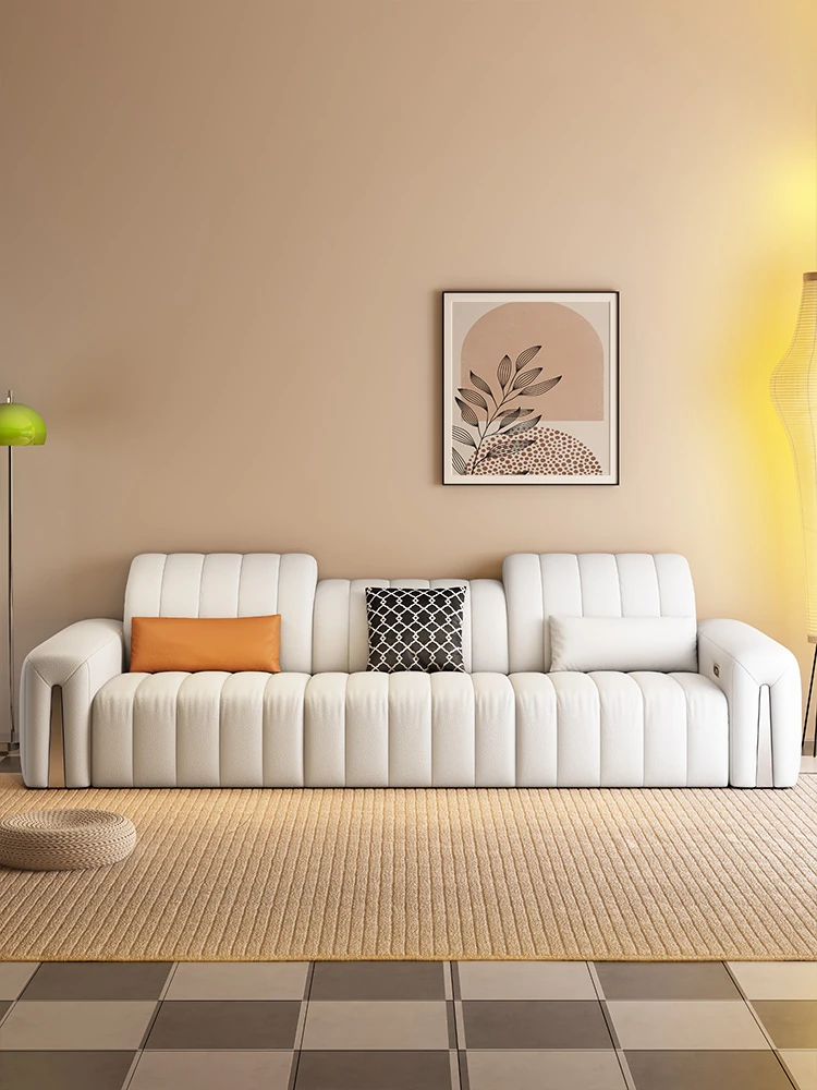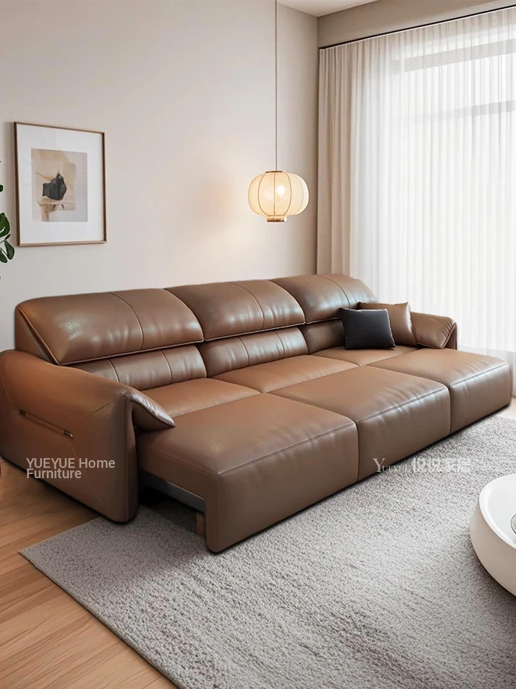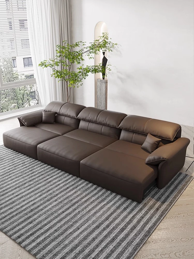 Italian Minimalist Genuine Leather Sofa - Electric Multi-Functional Expandable Couch with Remote Control, Versatile Design for Living Room, Stylish Elephant Ear Sofa Bed