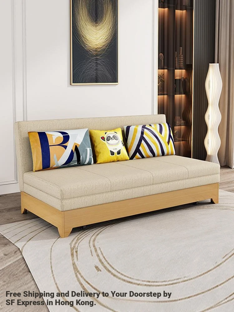 【Free Shipping to Hong Kong】Multifunctional Solid Wood Sofa Bed - Foldable & Expandable Design for Small Living Rooms, 1.5m Fabric Sofa Bed
