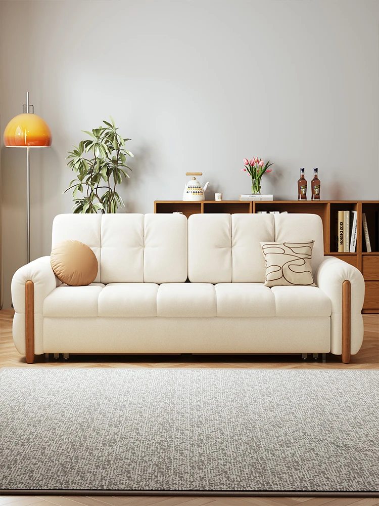 French Vintage Cream Solid Wood Sofa Bed - Foldable, Dual-Purpose for Home Use, Perfect for Small Living Rooms, 2025 New Style Expandable Bed