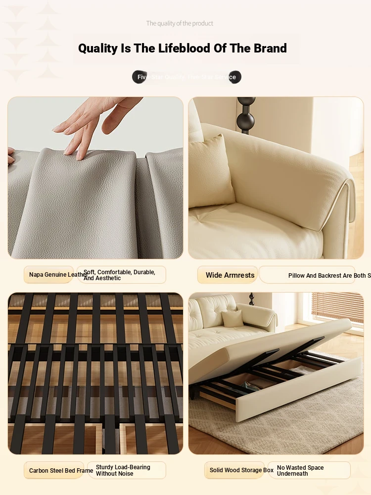 2025 New Arrival Genuine Leather Sofa Bed - Space-Saving Multi-Functional Foldable Smart Electric Sofa for Small Living Rooms