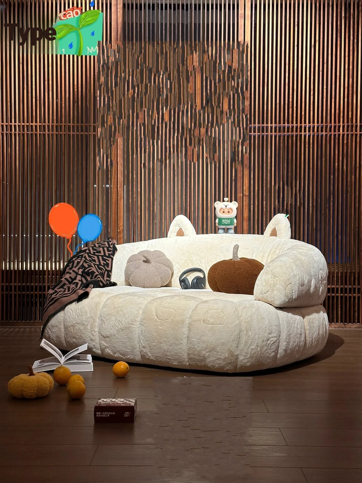 Cozy Cat Paw Velvet Sofa Bed - Trendy Foldable Multi-Functional Pull-Out Design for Small Apartments, Creamy Aesthetic Perfect for Living Rooms