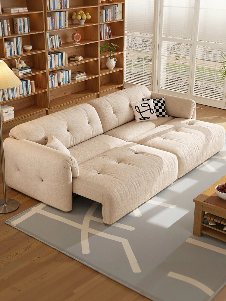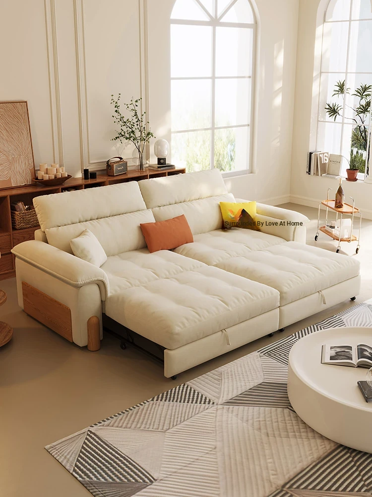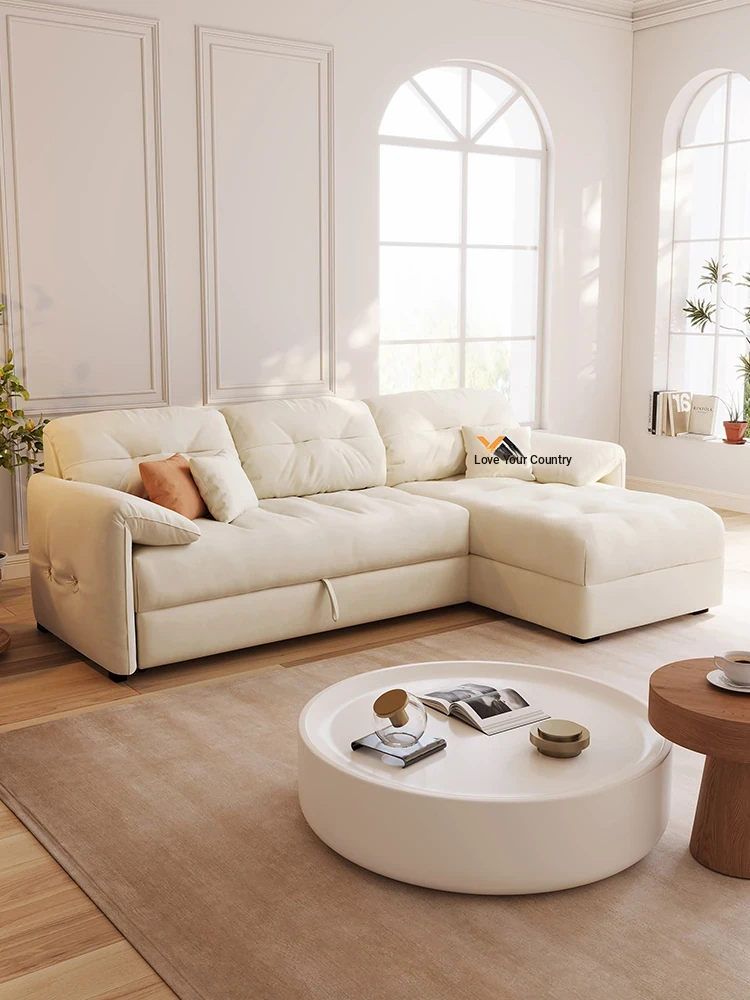 2025 New Stylish French Cream Fabric Sofa Bed for Small Apartments - Versatile and Space-Saving with Storage, Perfect for Trendy Living Rooms