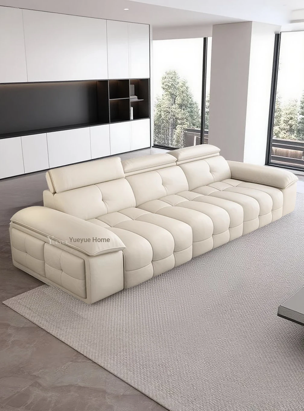 Modern Minimalist Electric Leather Sofa for Small Living Rooms - Premium Top-Grain Cowhide, First-Class Three-Seater with Straight-Line Design