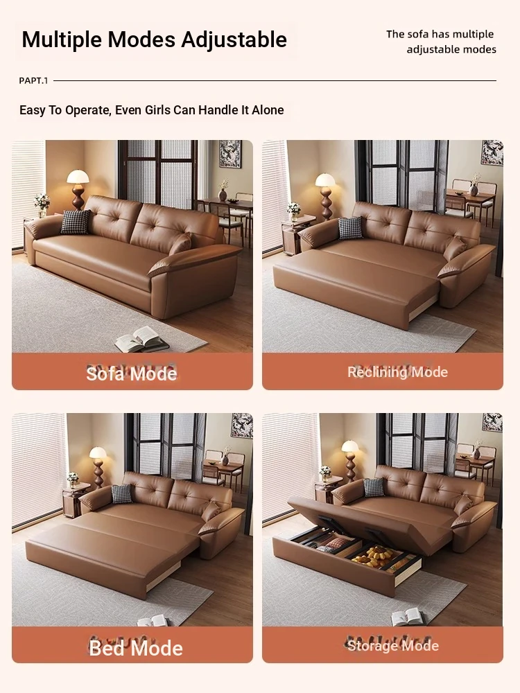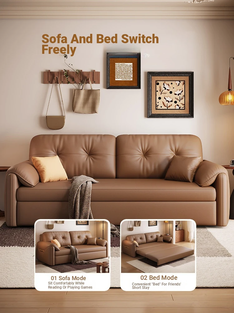 2025 New Lawrence Electric Leather Sofa Bed - Multifunctional Premium Pull-Out Design, Space-Saving and Wall-Free Comfort
