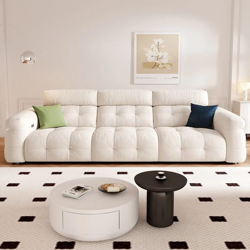 Electric Multi-Functional Fabric Sofa Bed - Cat Scratch Resistant, Cozy Cream Style for Small Spaces, Extendable Straight Sofa for Your Living Room