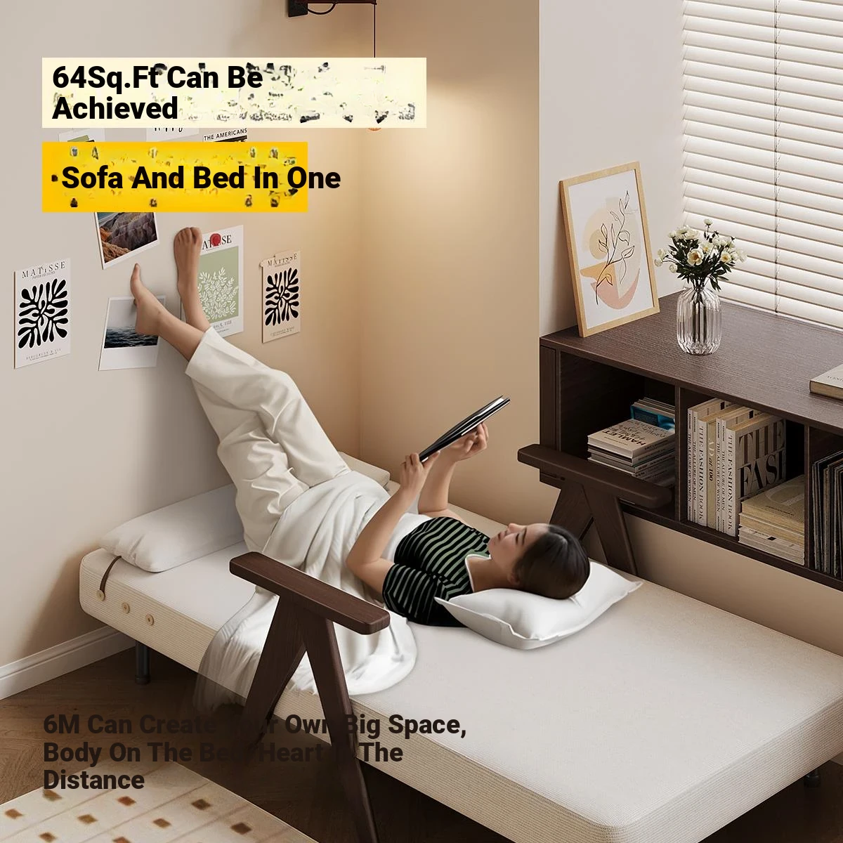 Dreamy Solid Wood Foldable Sofa Bed - Multi-functional Small Space Solution, Trendy Design for Single Use, Ideal for Home with Chaise Lounge Feature.