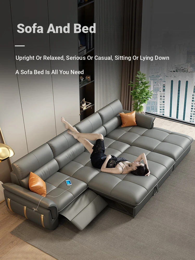 Modern Adjustable Sofa Bed for Small Spaces – Stylish Dual-Use Design with Thick Cat-Proof Fabric and Electric Features, Perfect for Your Living Room!