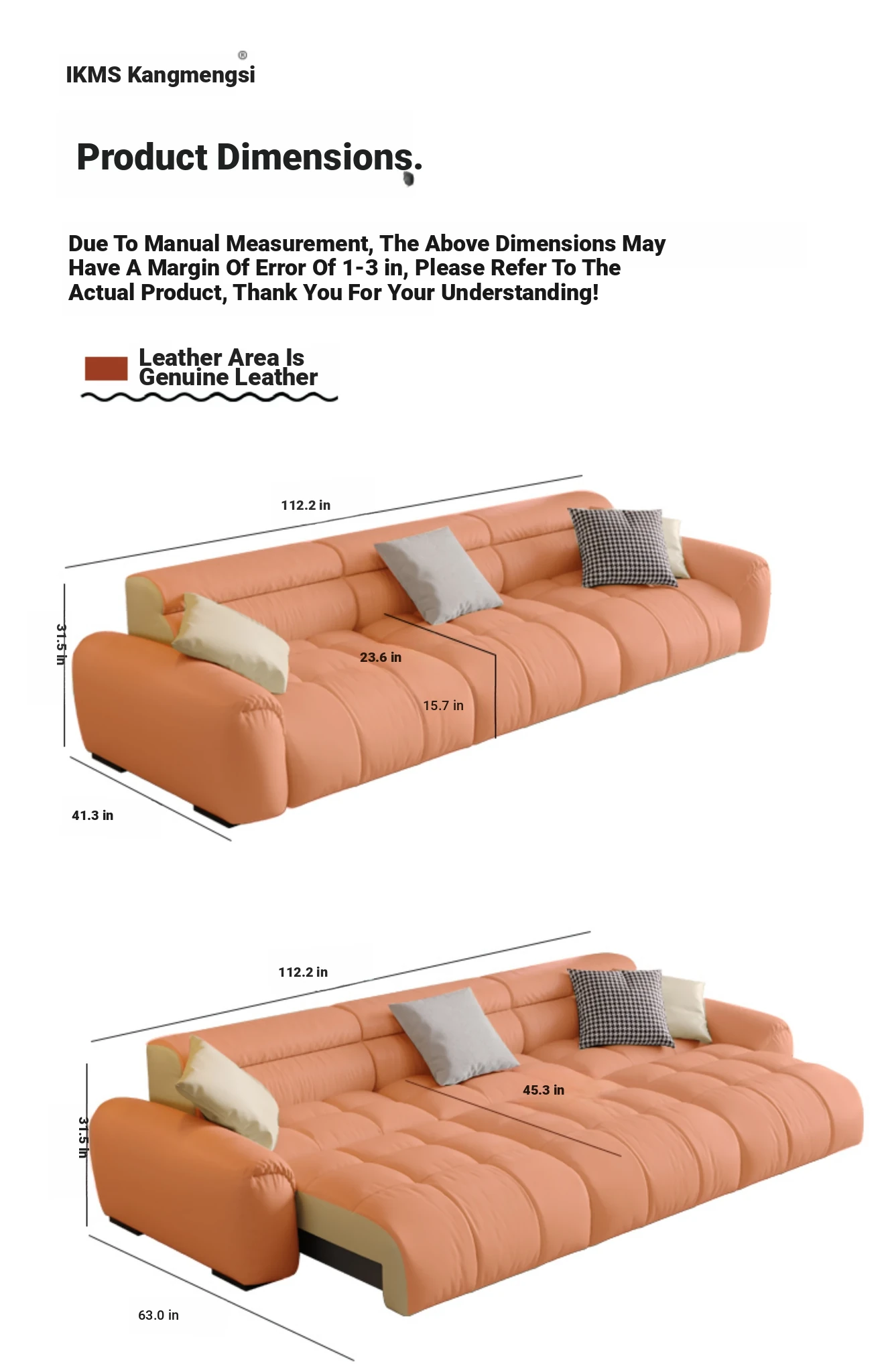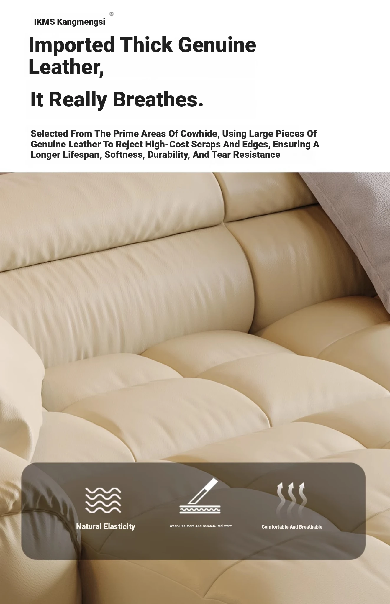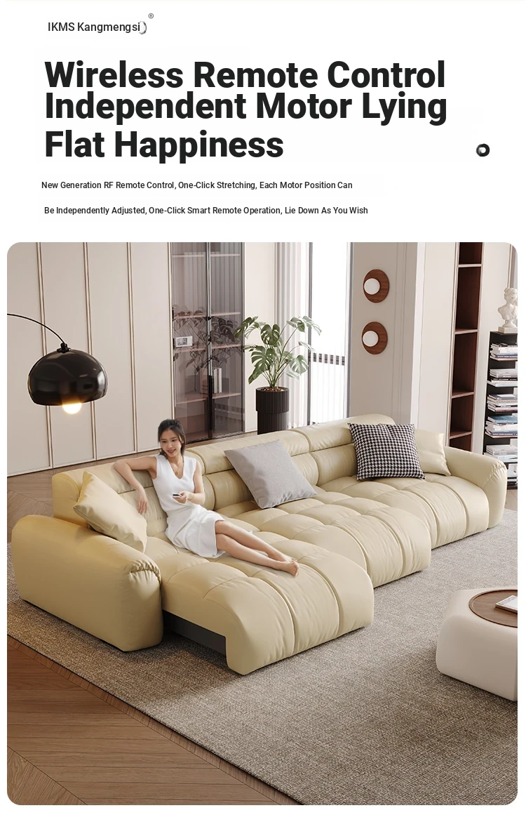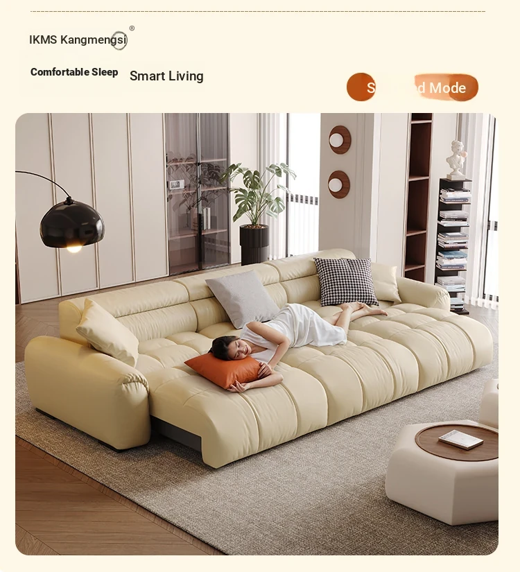2025 New Italian Minimalist Genuine Leather Electric Multifunctional Sofa – Expandable Two-in-One Sofa Bed for Modern Living Rooms