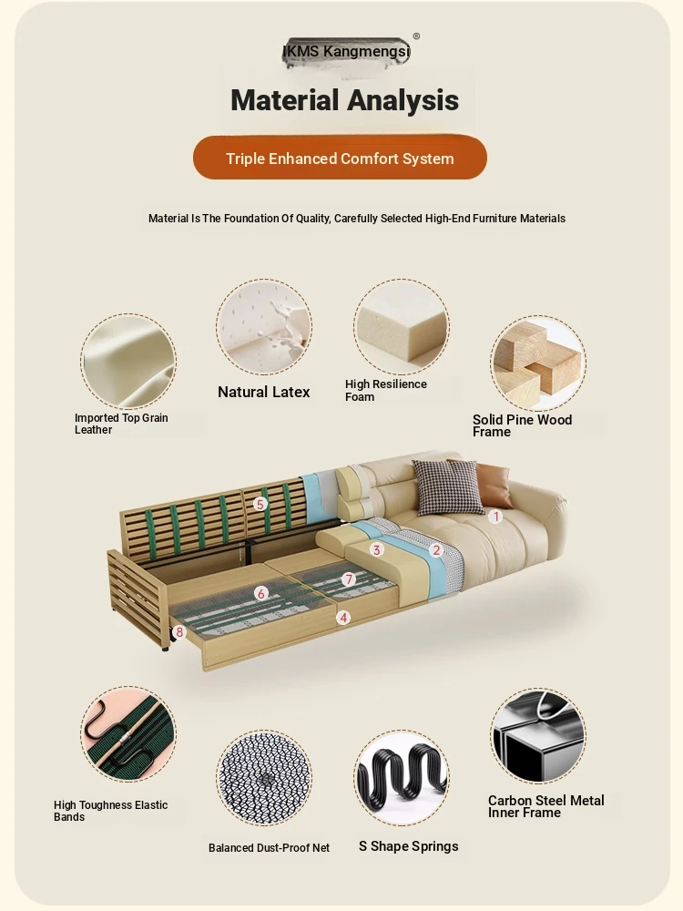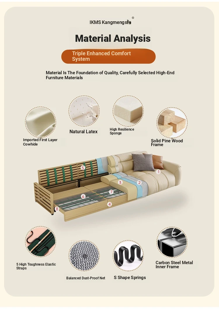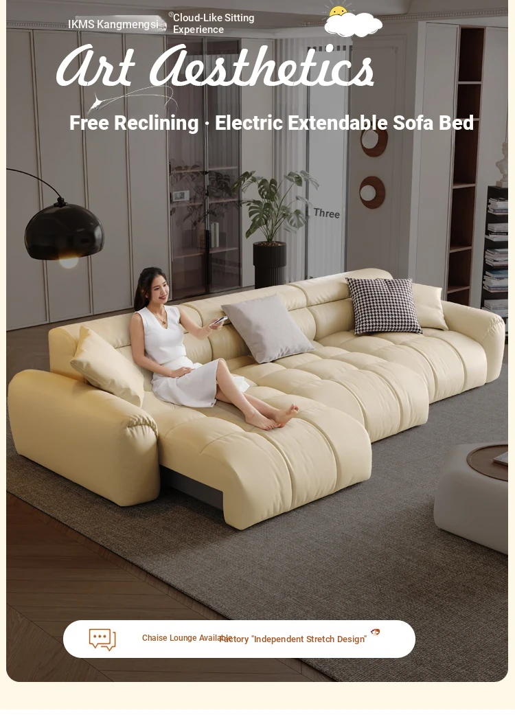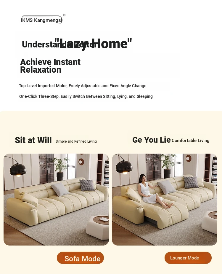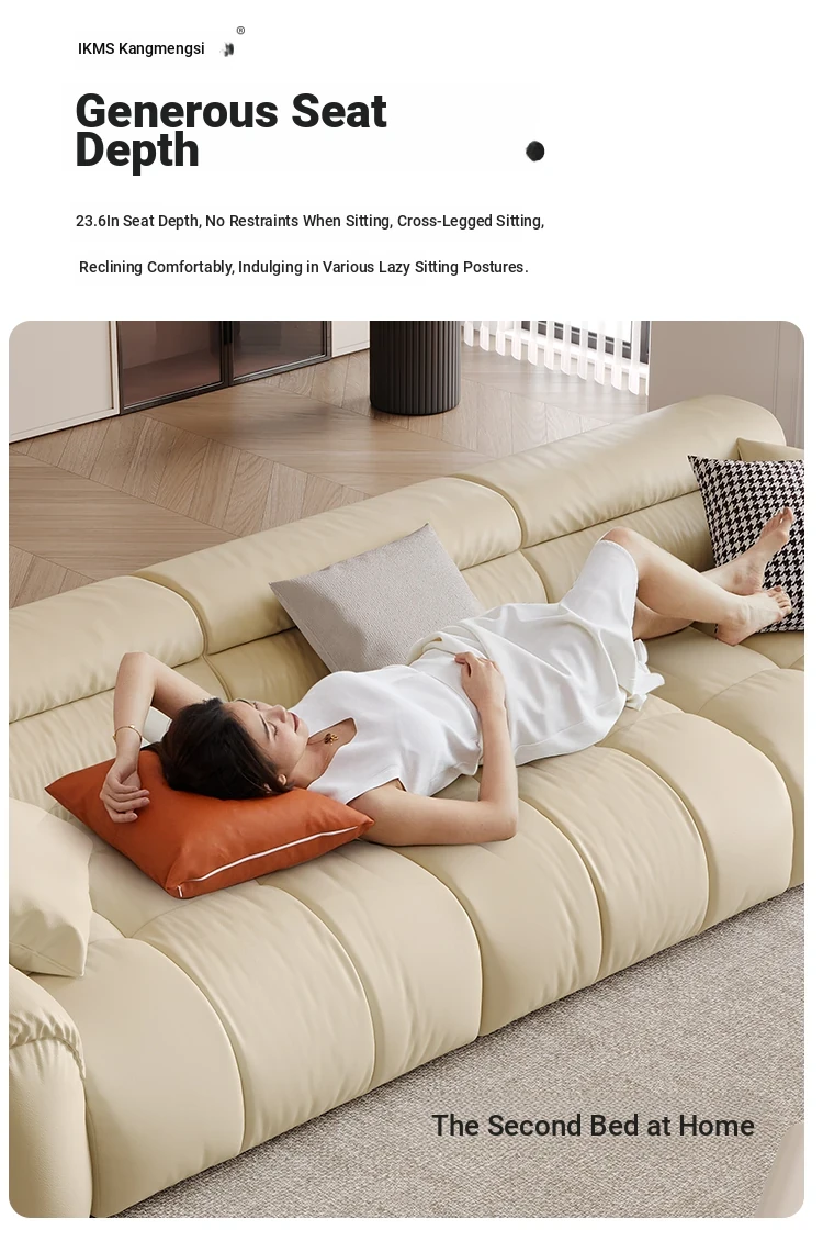 2025 New Italian Minimalist Genuine Leather Electric Multifunctional Sofa – Expandable Two-in-One Sofa Bed for Modern Living Rooms