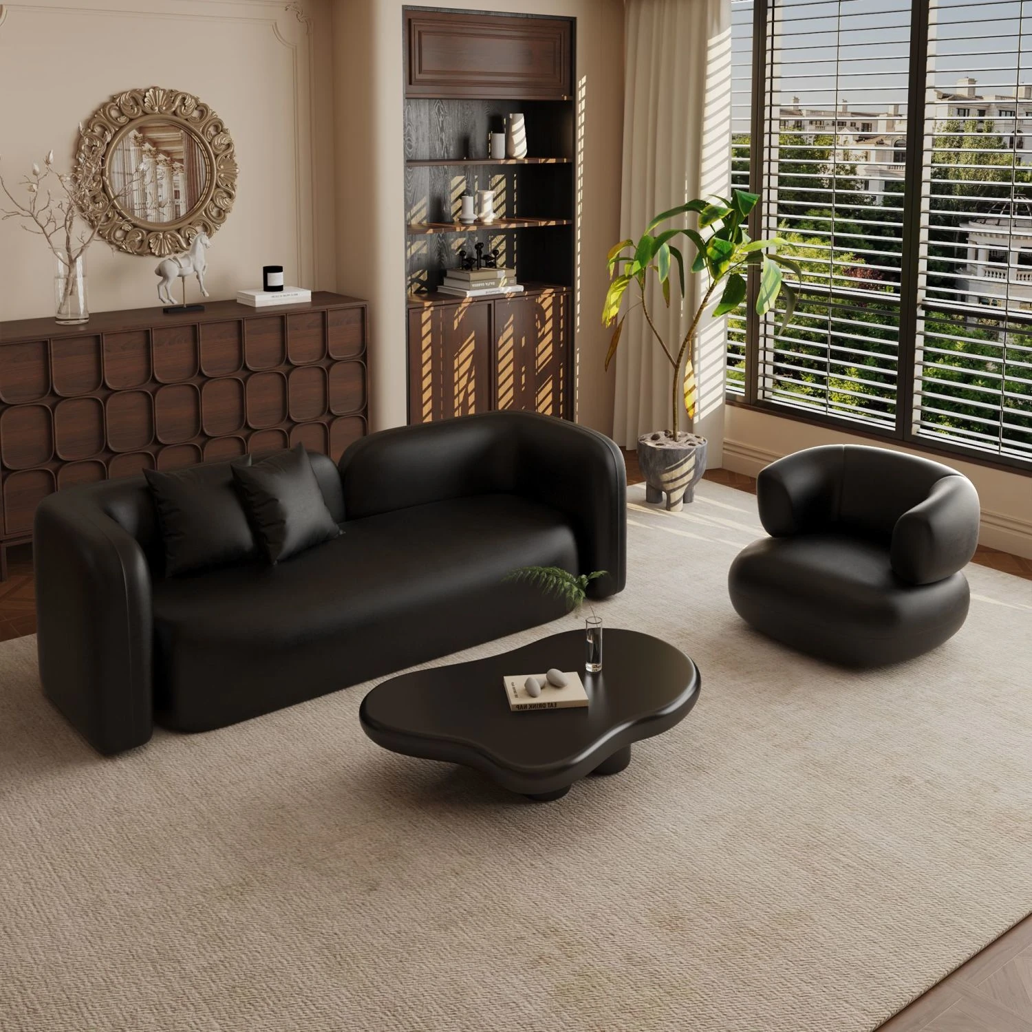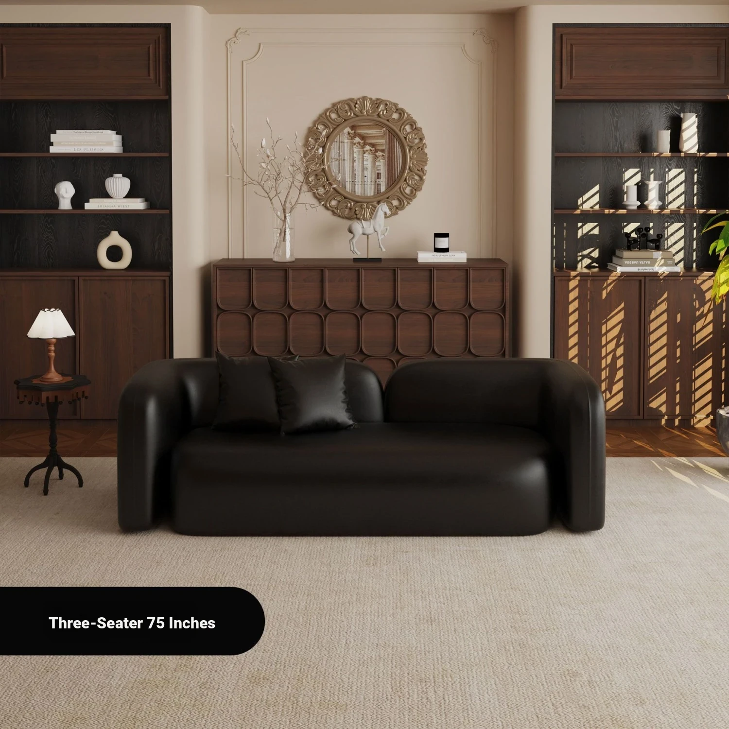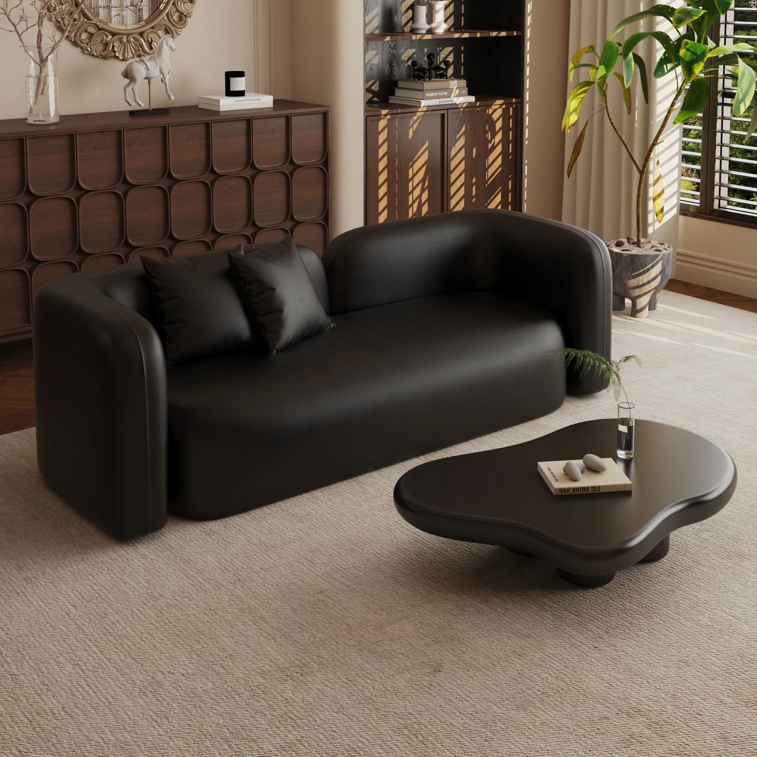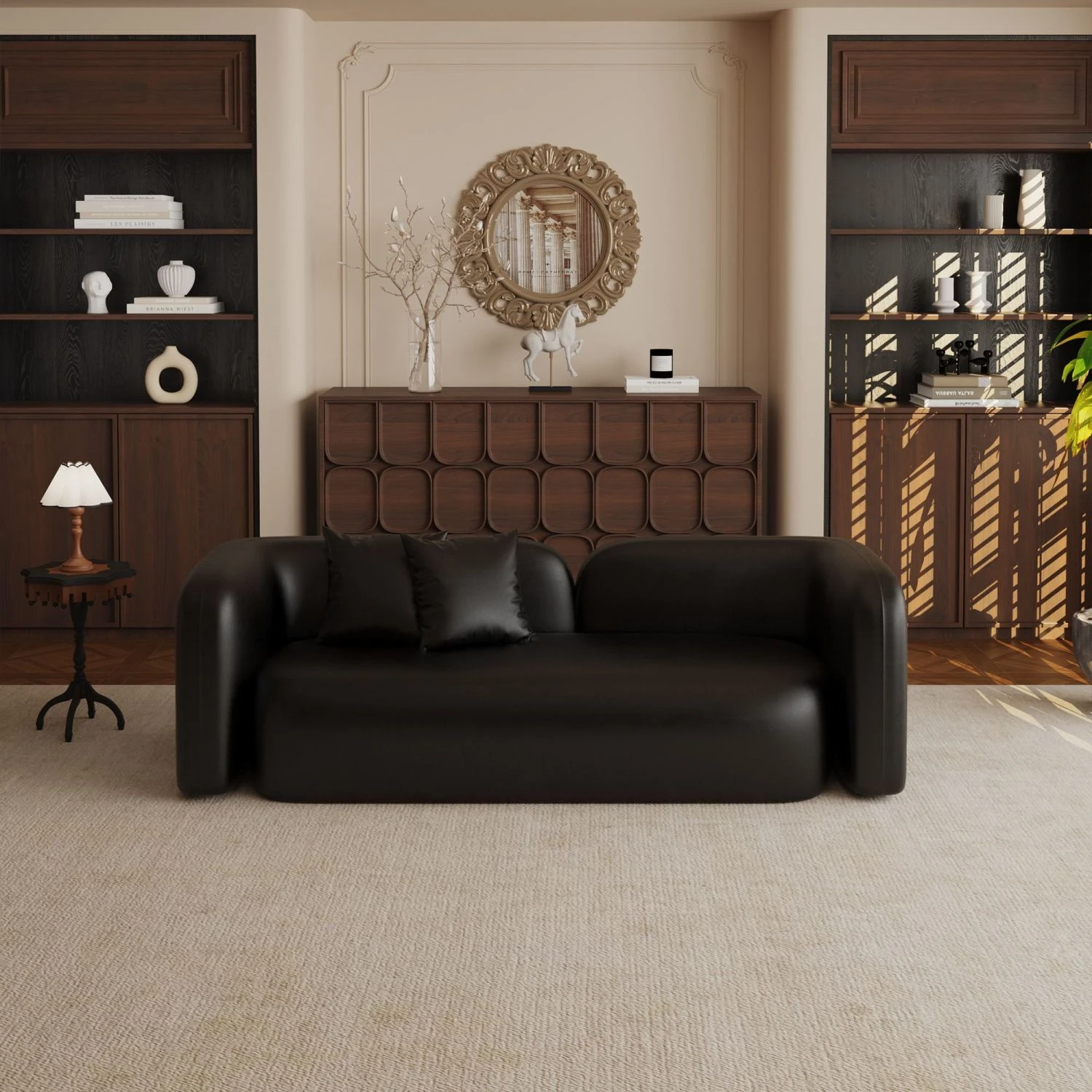 Black Italian Style Homewear Faux Leather Retro Sofa for Beauty Salons, Offices, and Reception Areas - Perfect for Relaxation and Comfort