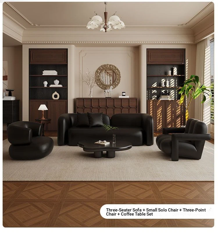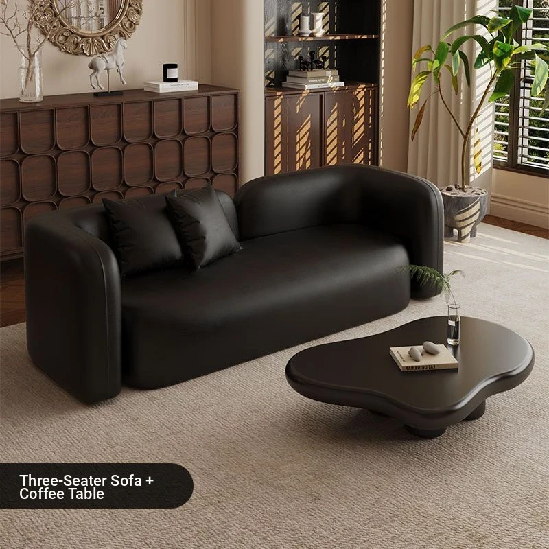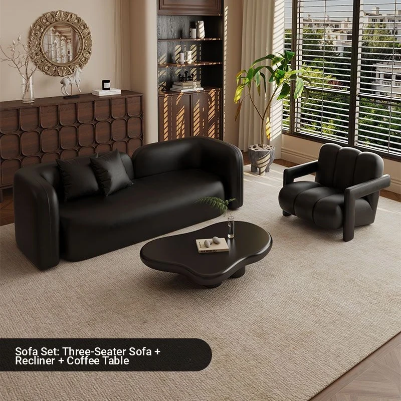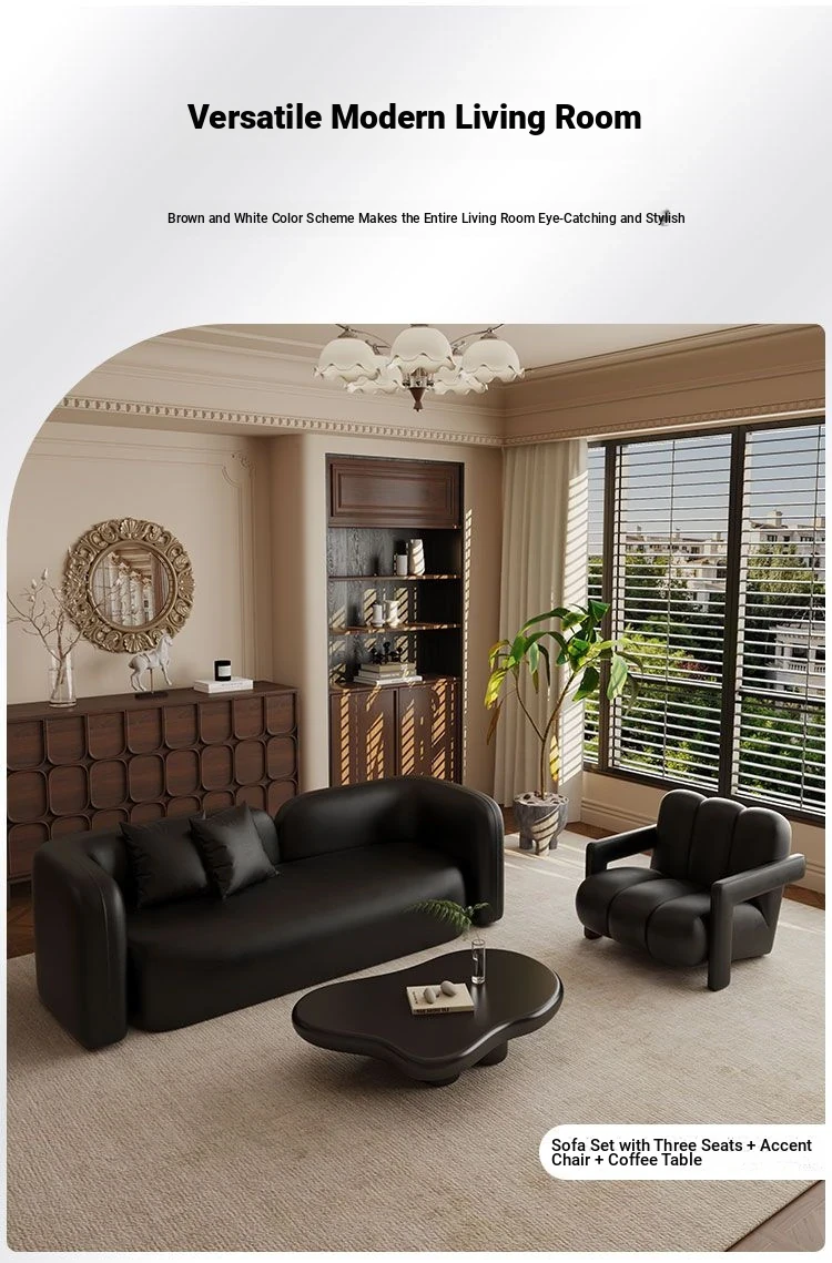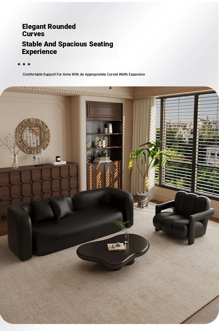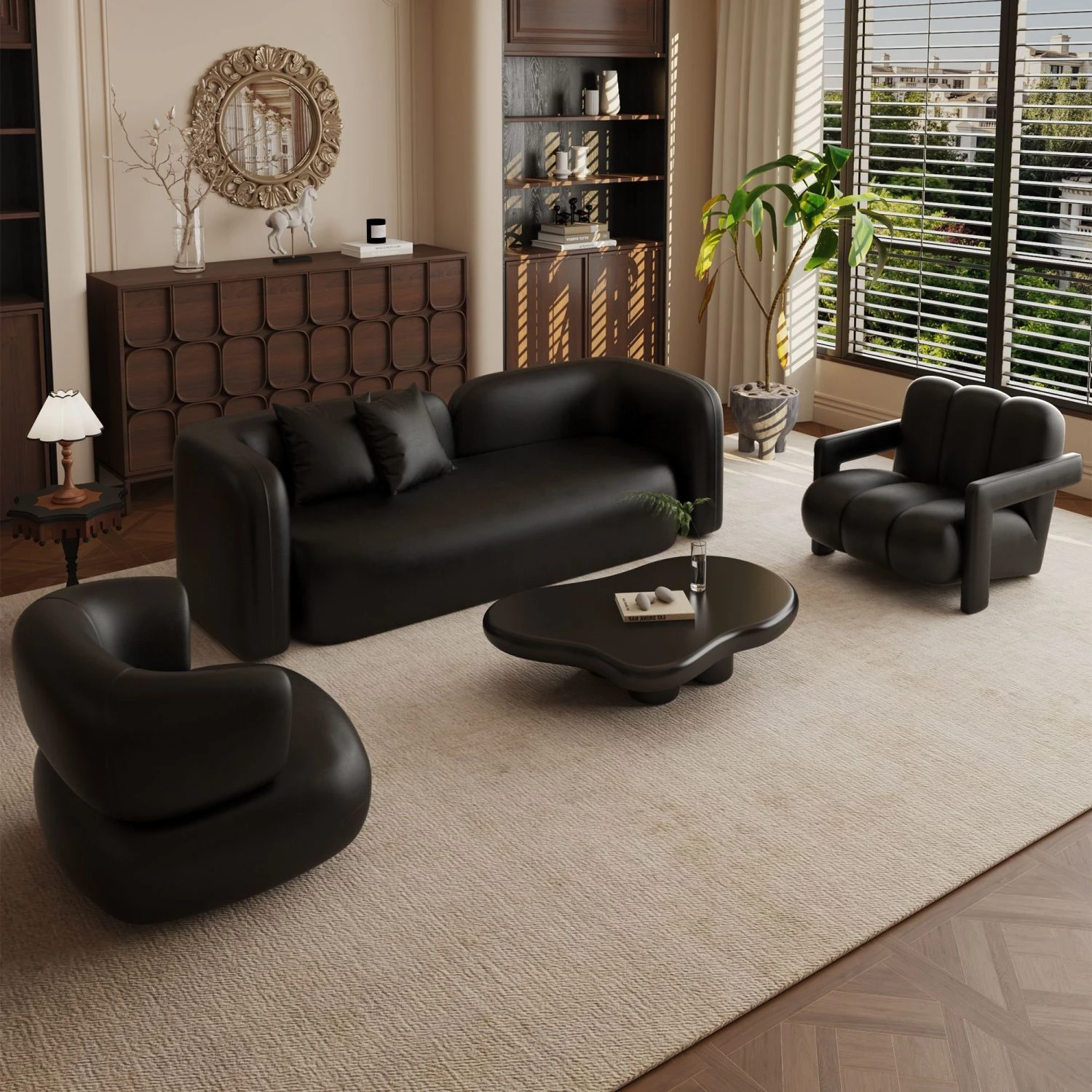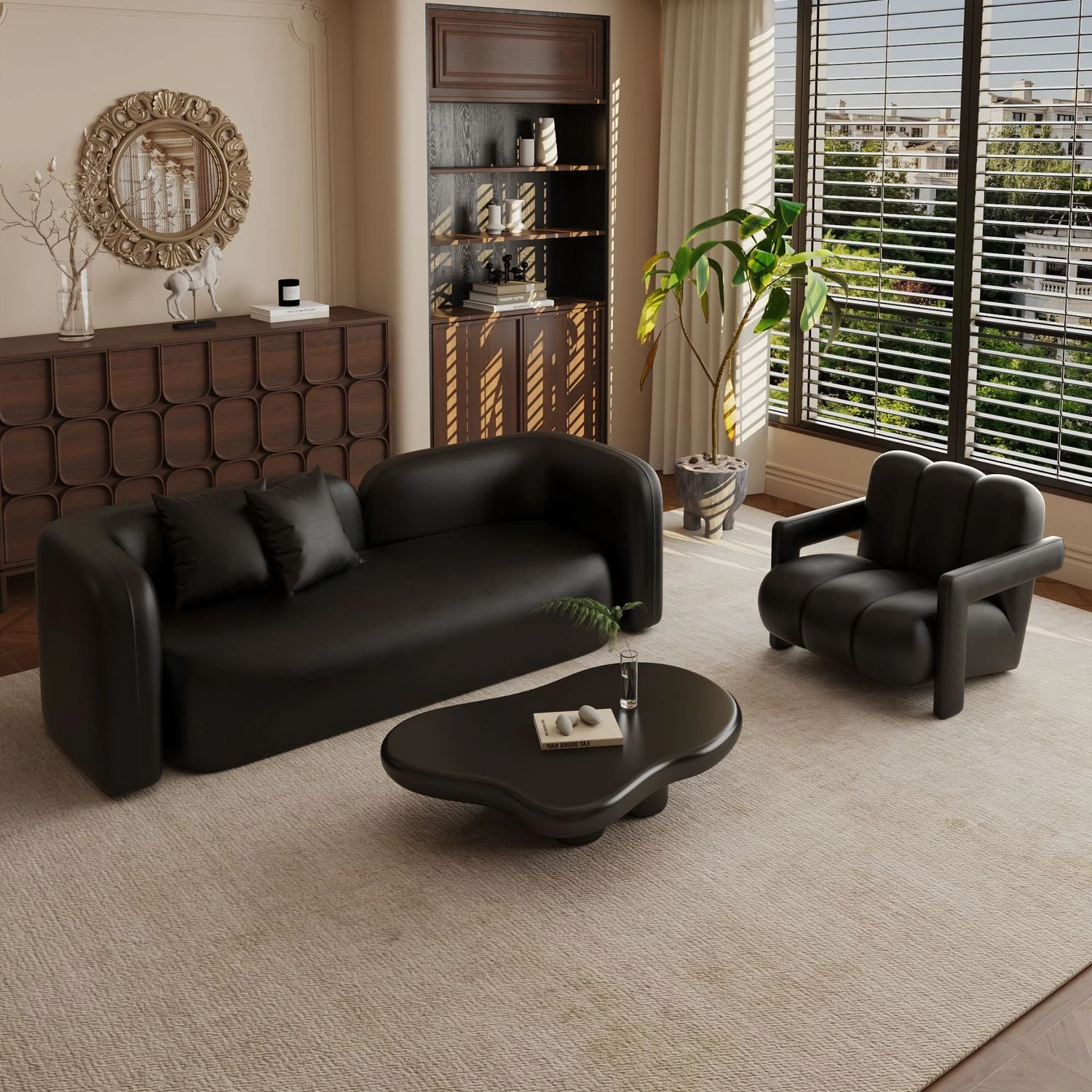 Black Italian Style Homewear Faux Leather Retro Sofa for Beauty Salons, Offices, and Reception Areas - Perfect for Relaxation and Comfort
