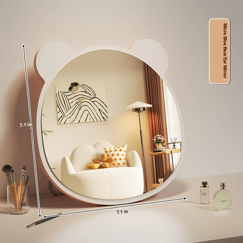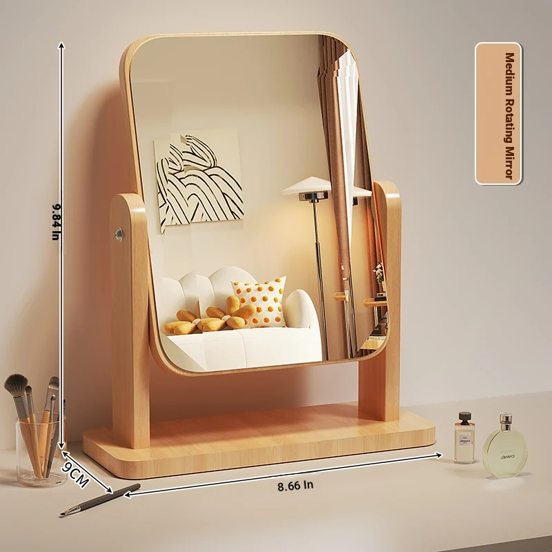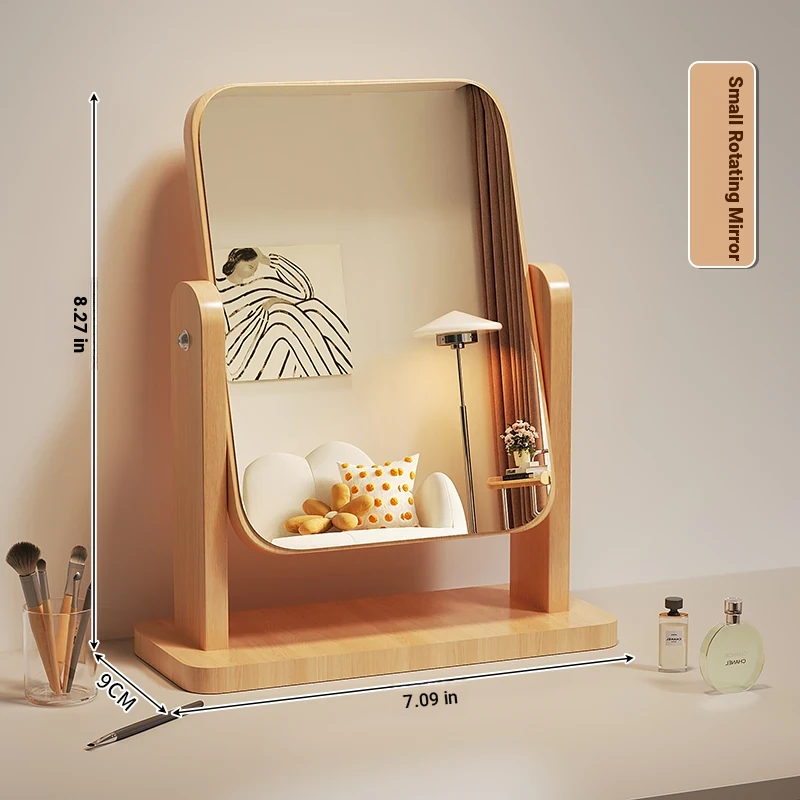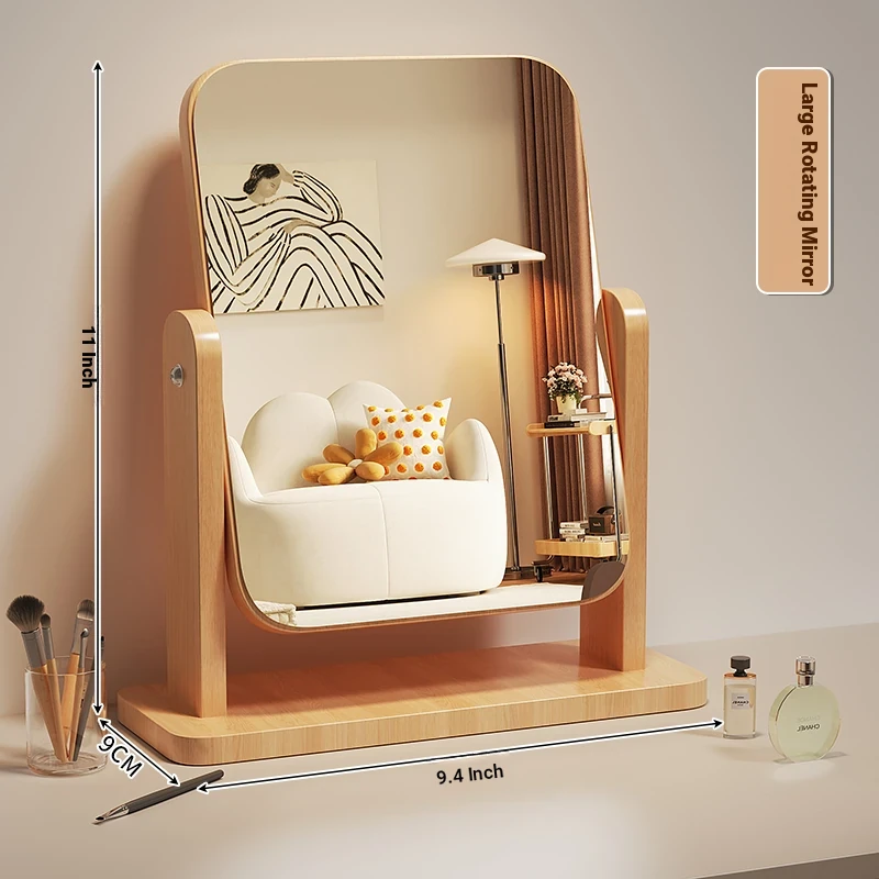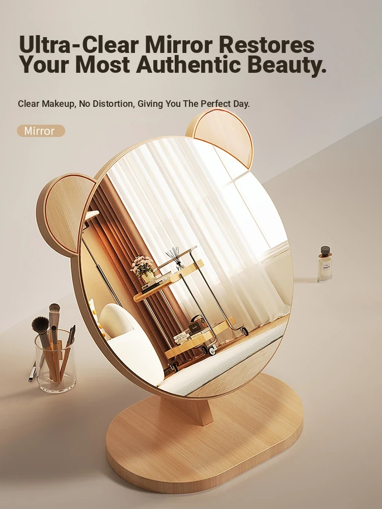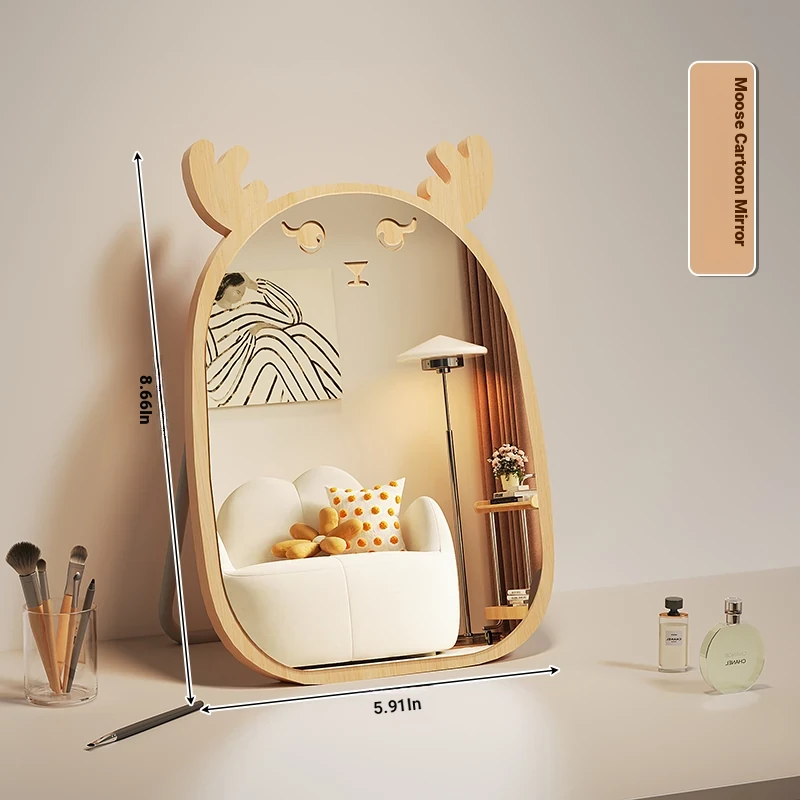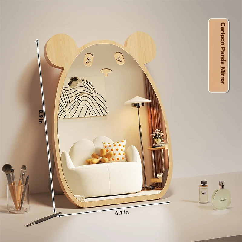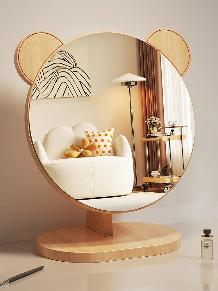 Cartoon Folding Makeup Mirror for Students - Large Wooden Round Vanity Mirror for Dormitory and Home Use, Perfect for Desktop and Bedroom!