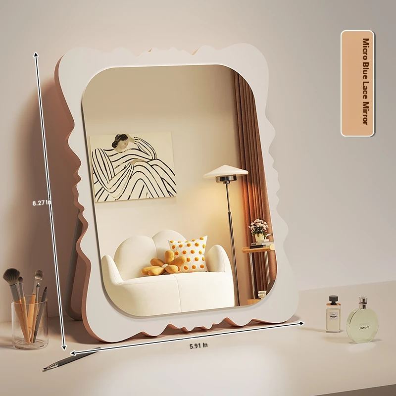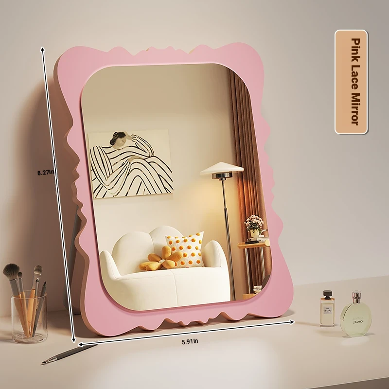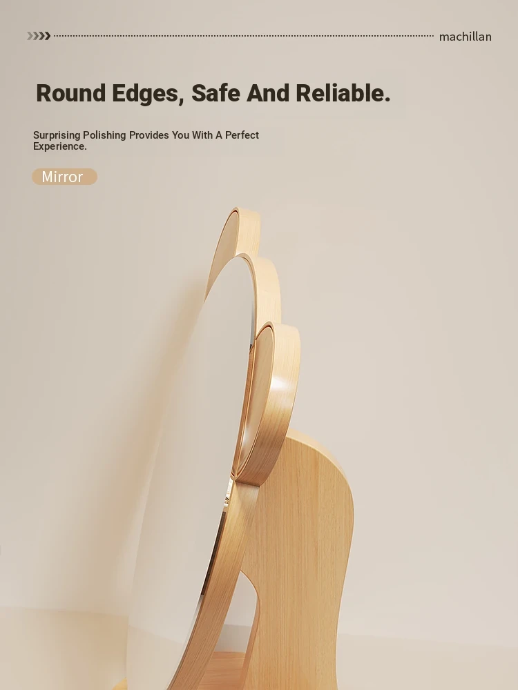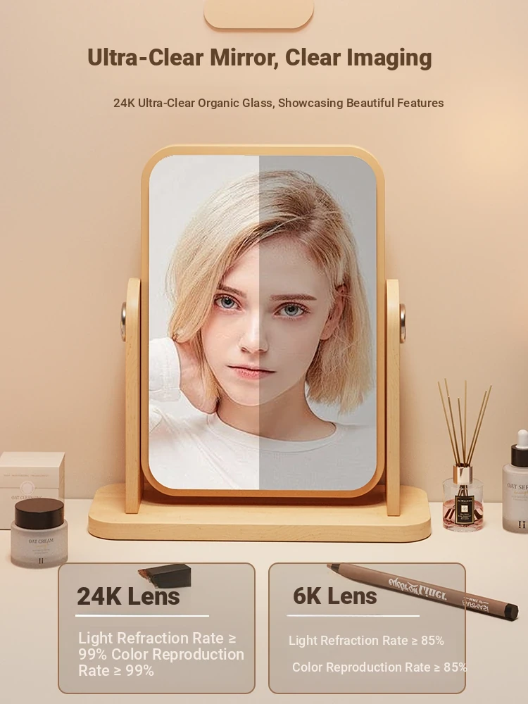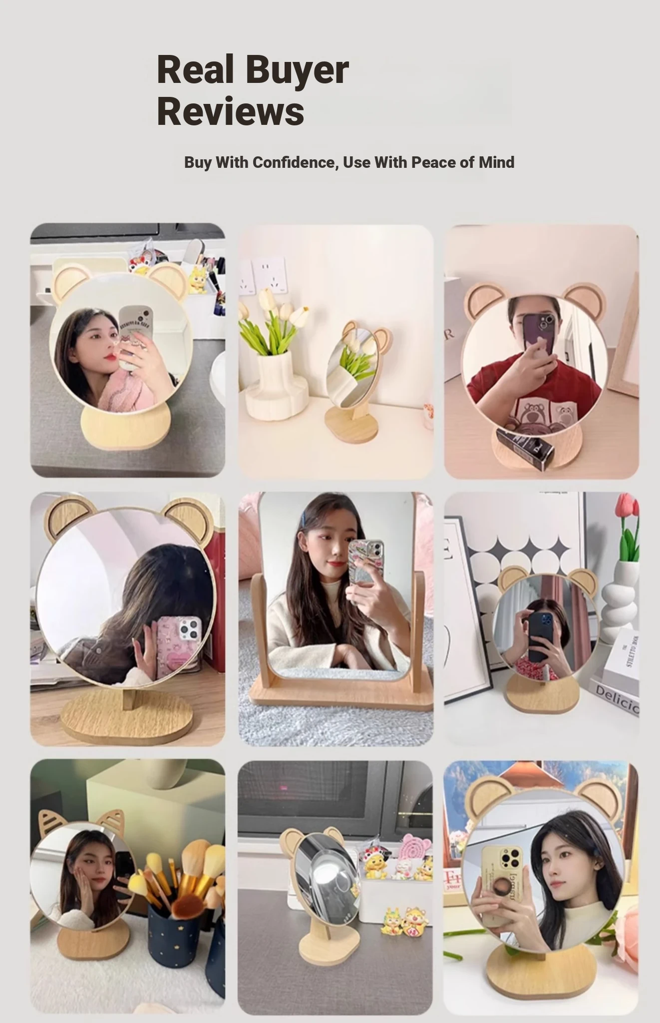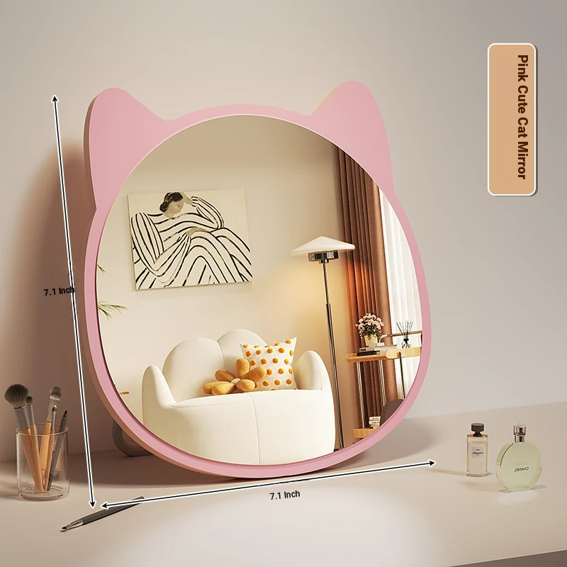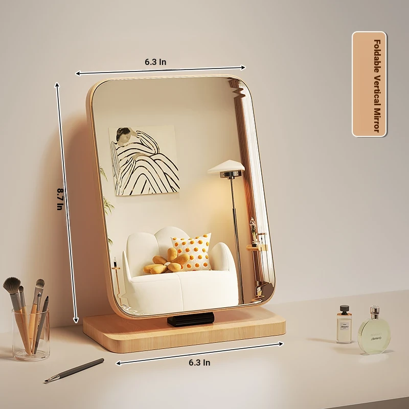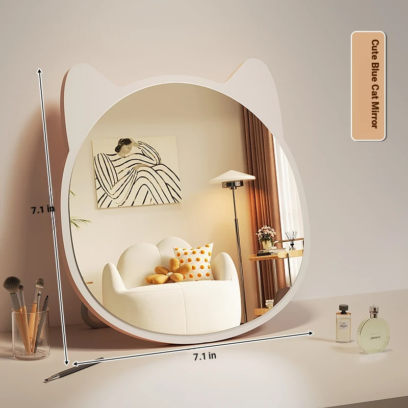 Cartoon Folding Makeup Mirror for Students - Large Wooden Round Vanity Mirror for Dormitory and Home Use, Perfect for Desktop and Bedroom!
