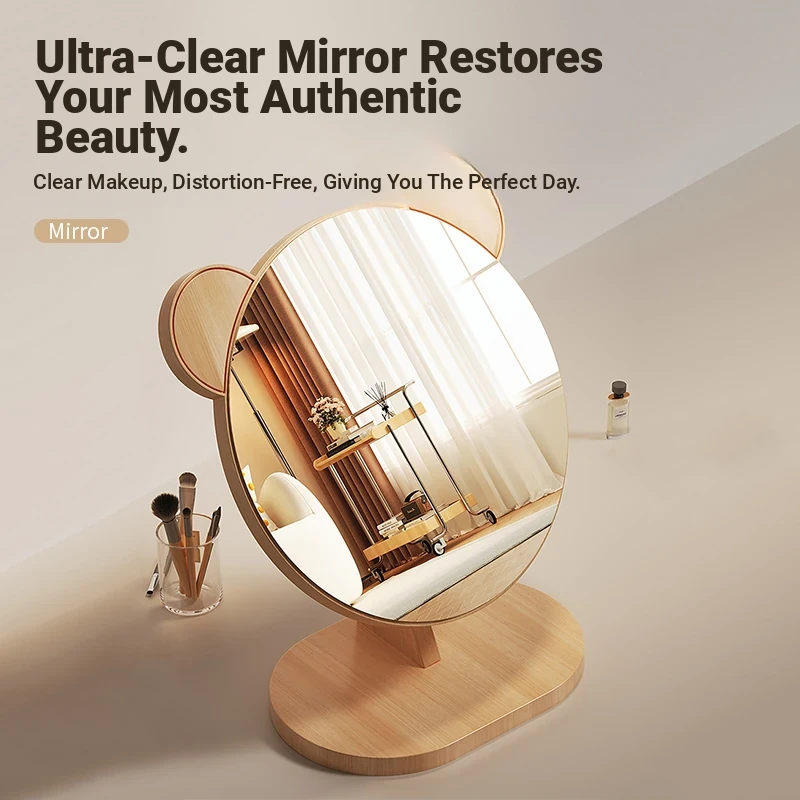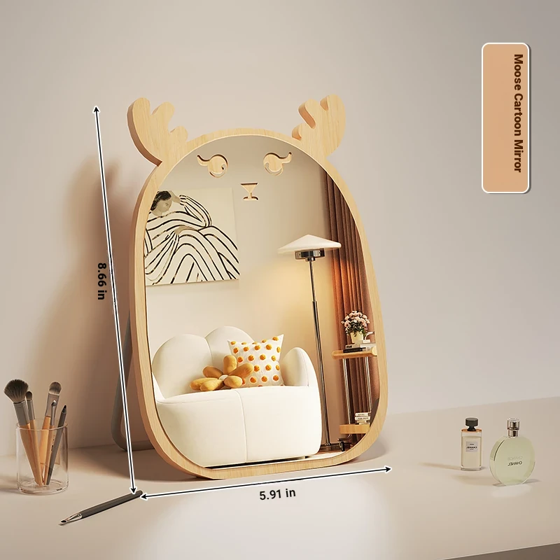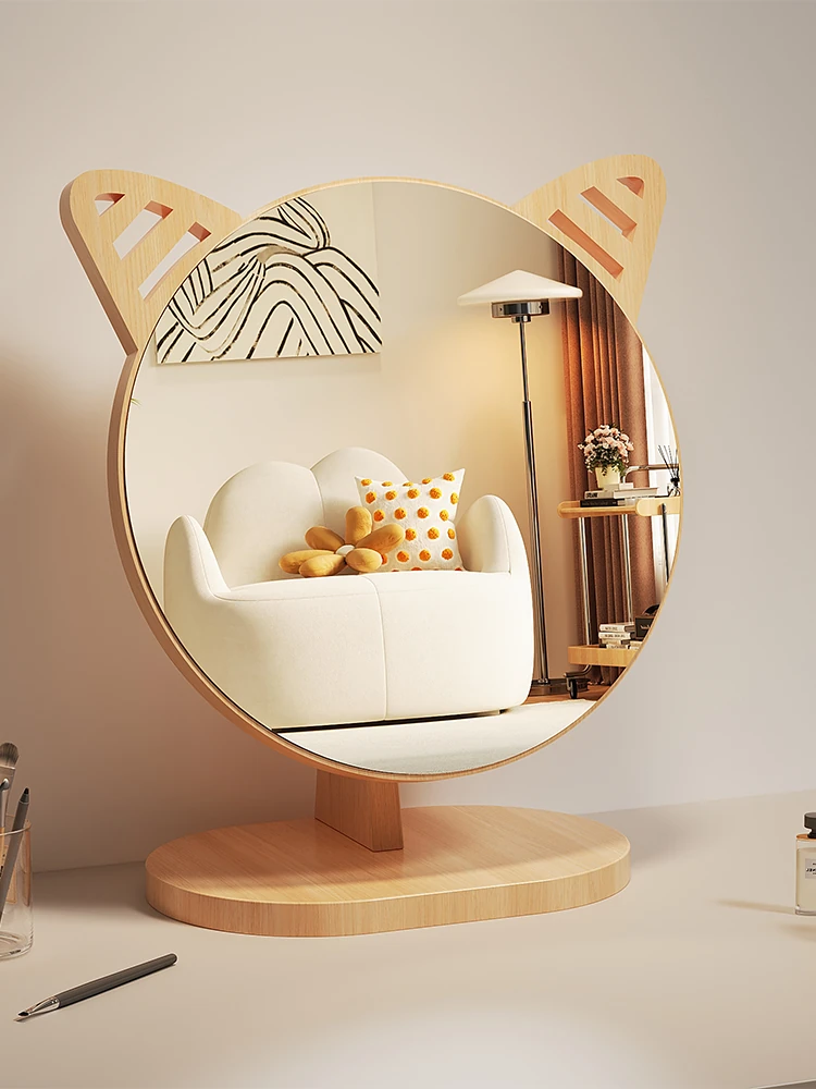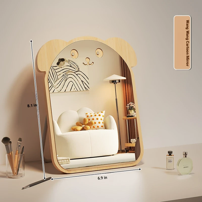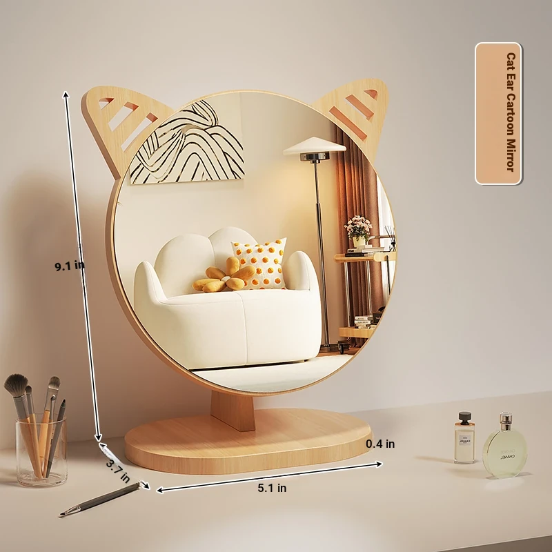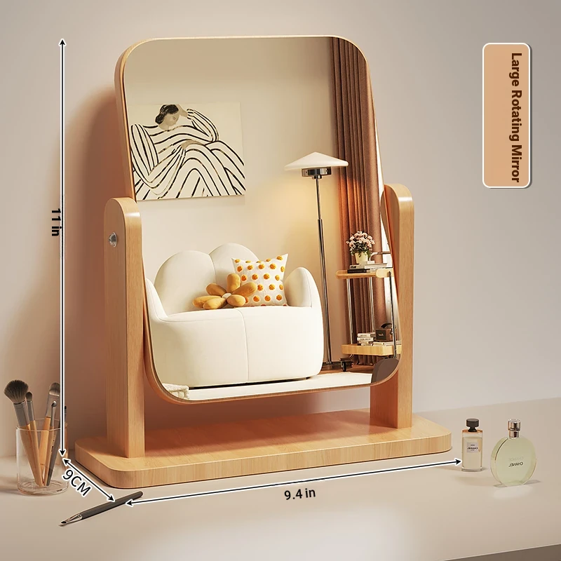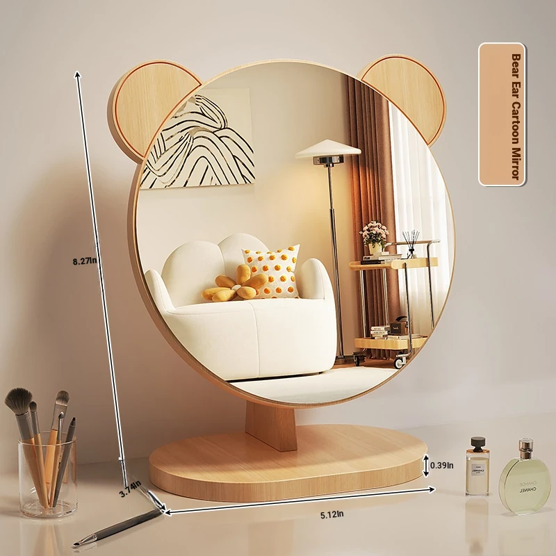 Cartoon Makeup Mirror for Dorm Room - Large Rotatable Wooden Desktop Vanity Mirror for Bedroom Use