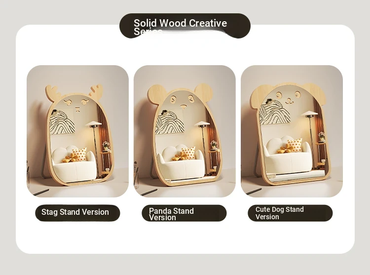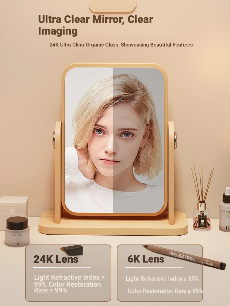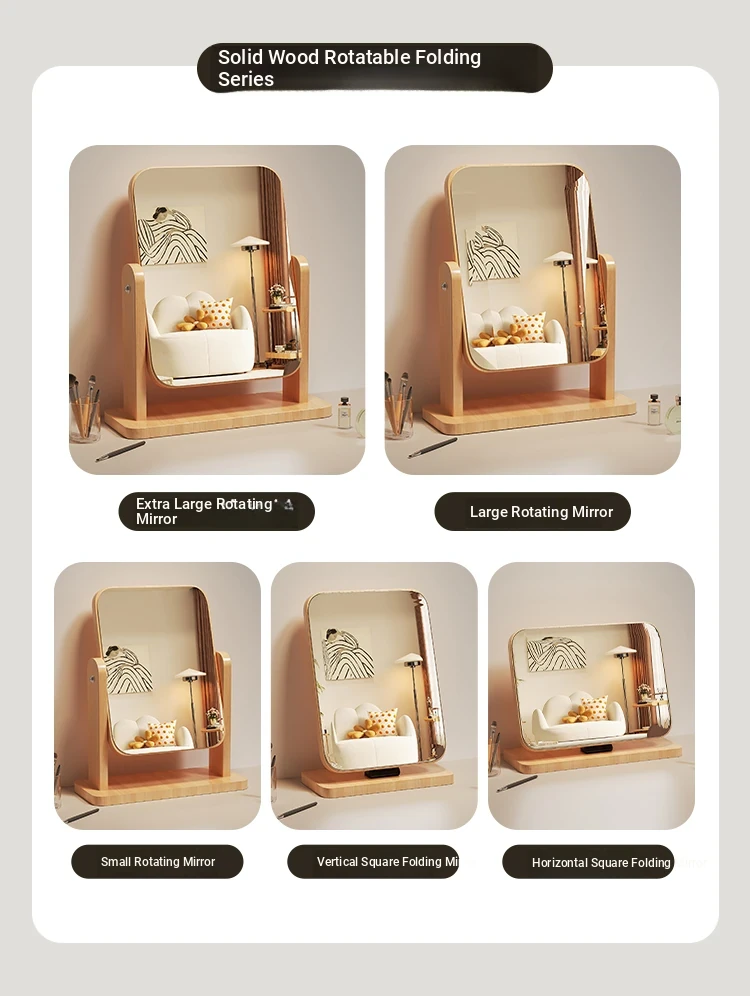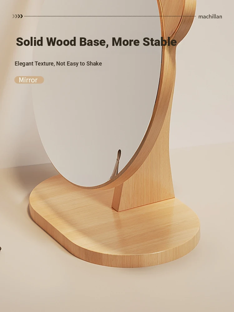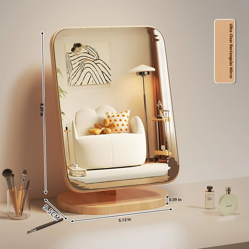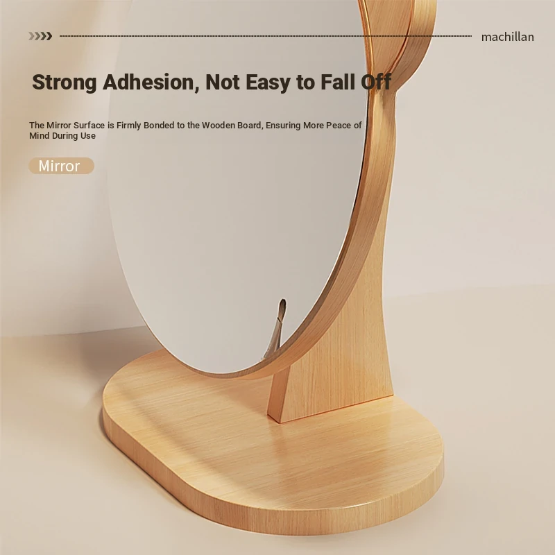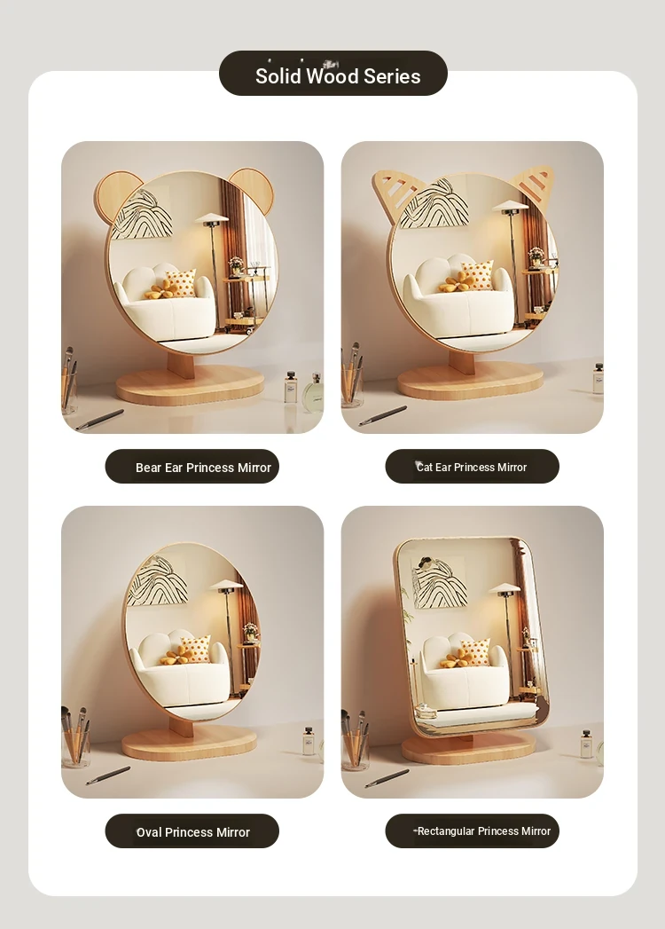 Cartoon Makeup Mirror for Dorm Room - Large Rotatable Wooden Desktop Vanity Mirror for Bedroom Use