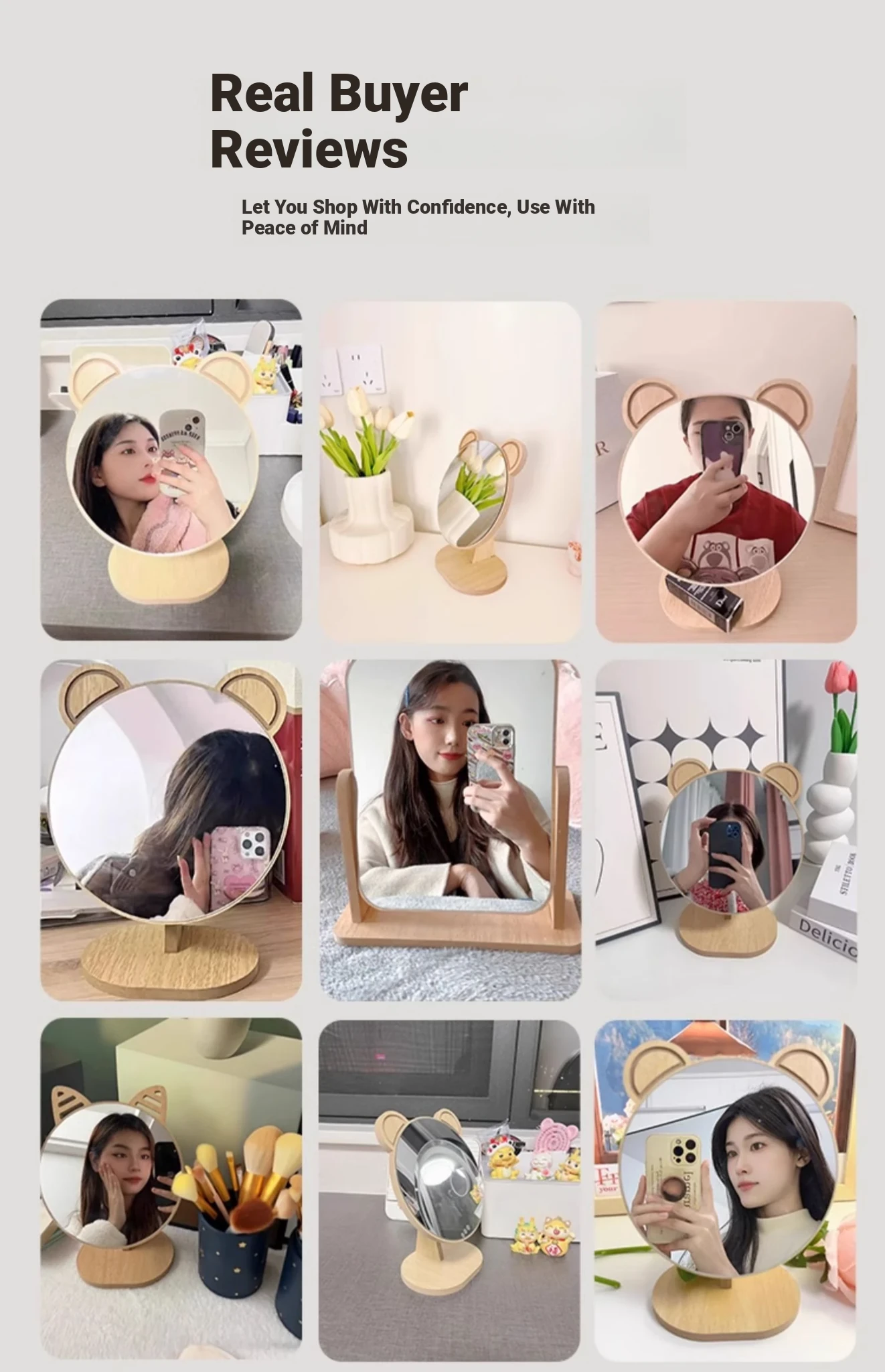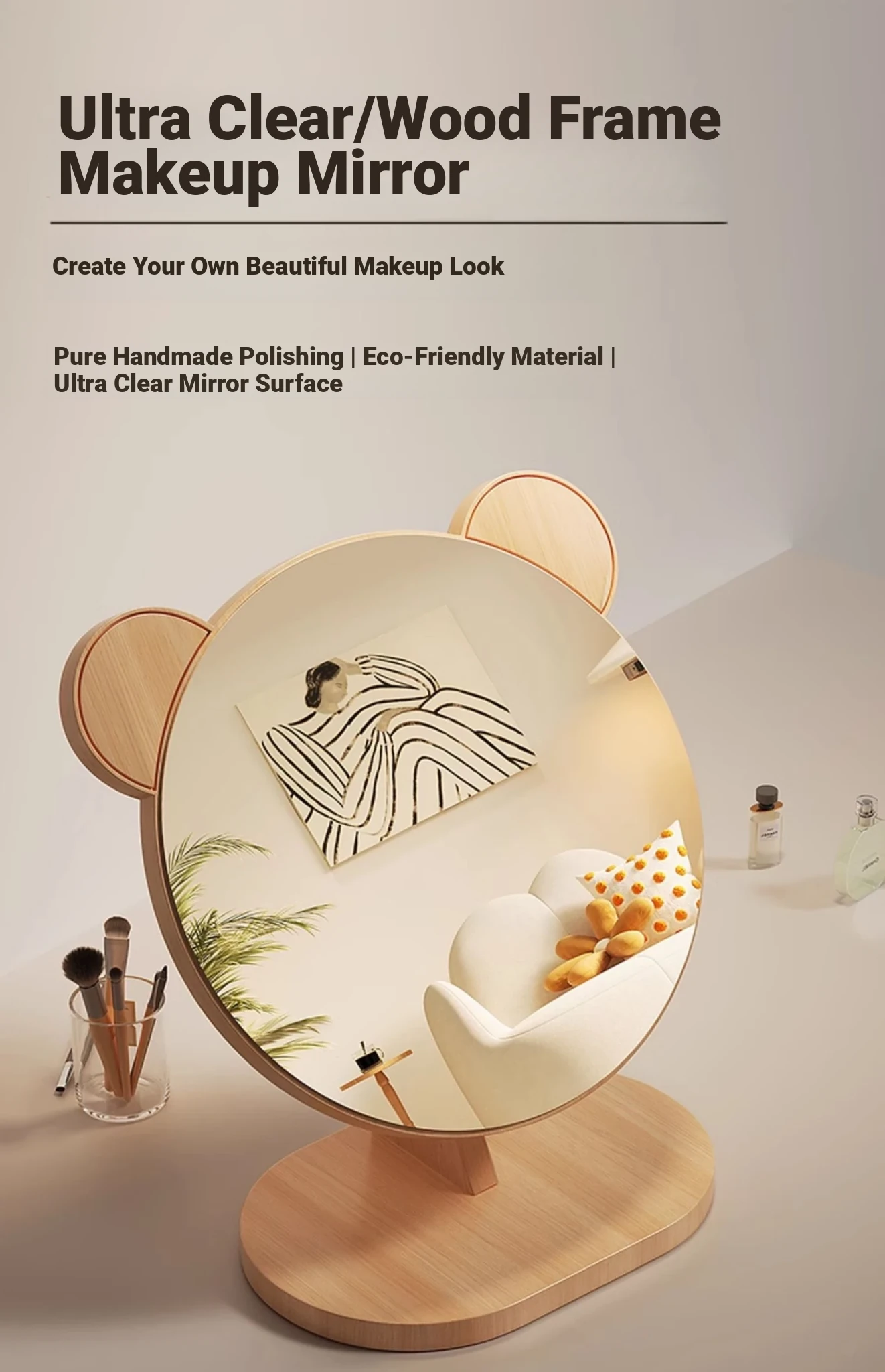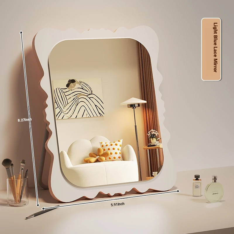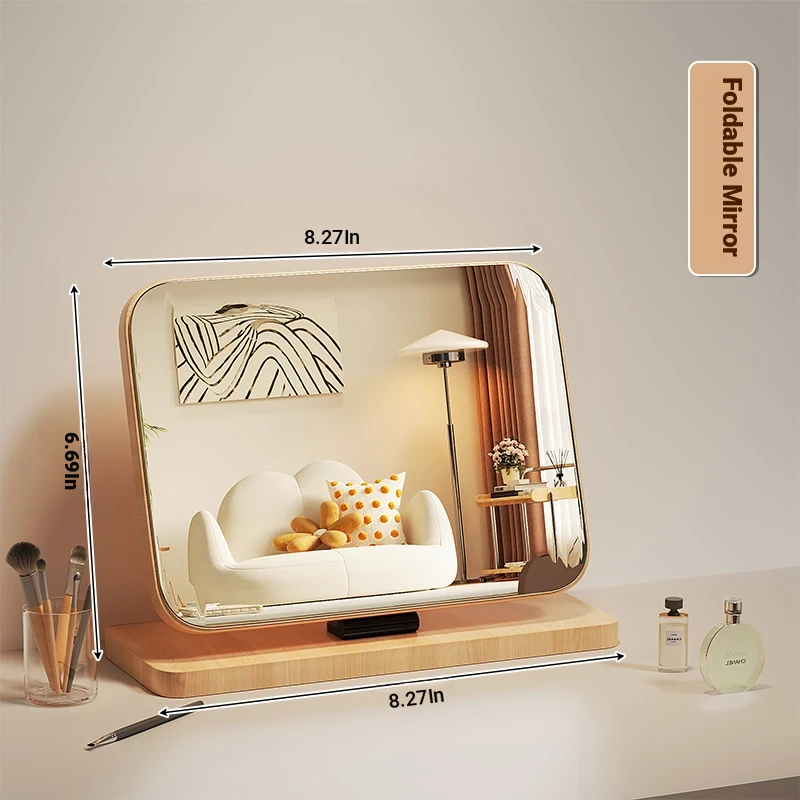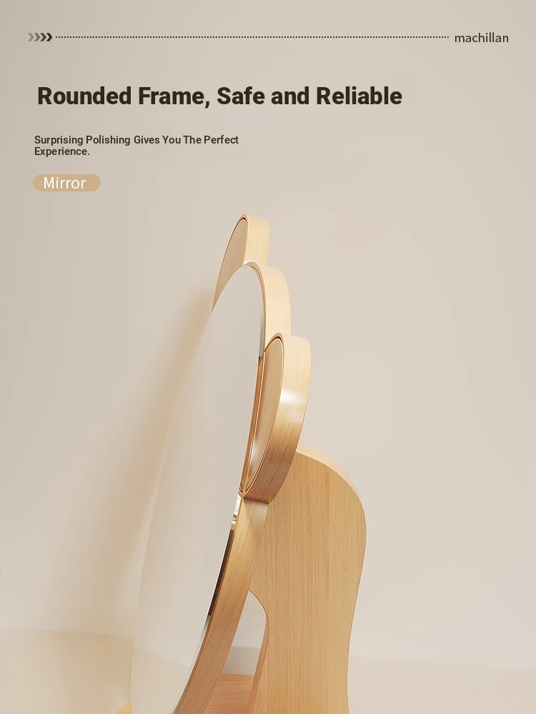Cartoon Makeup Mirror for Dorm Room - Large Rotatable Wooden Desktop Vanity Mirror for Bedroom Use