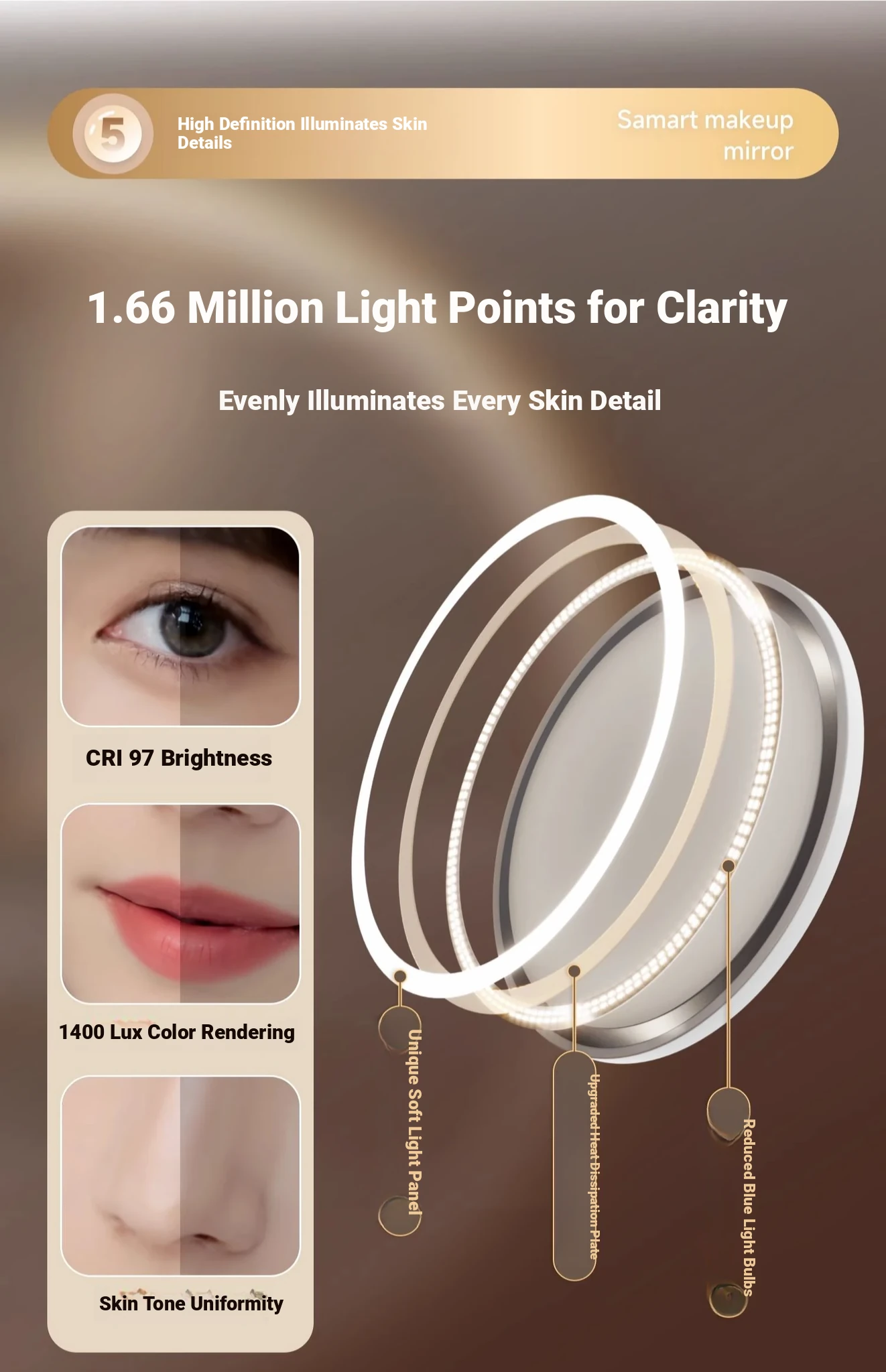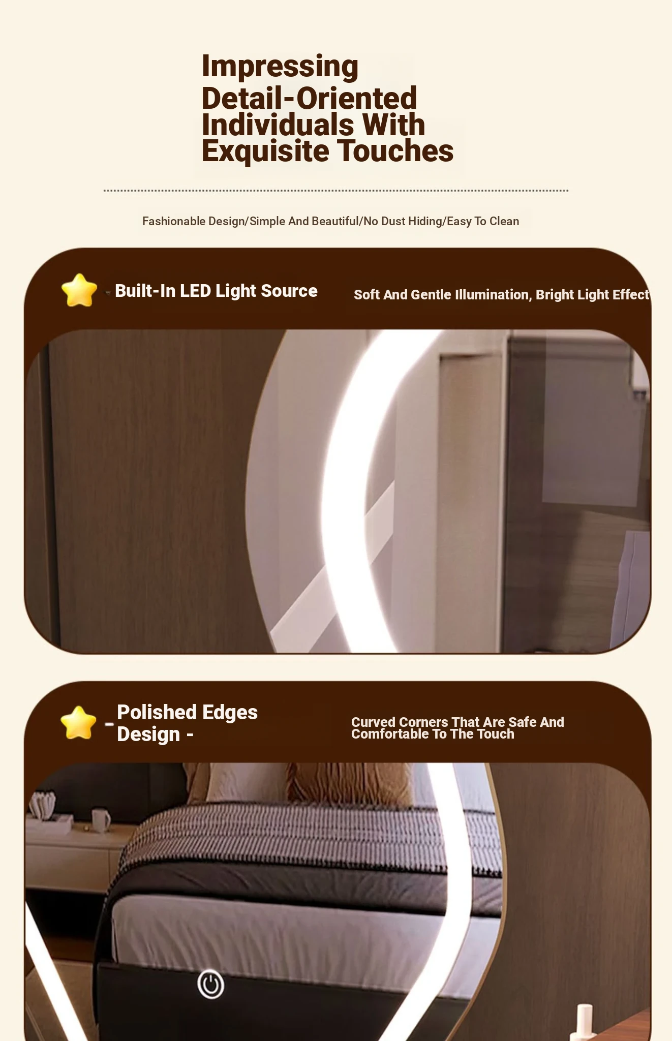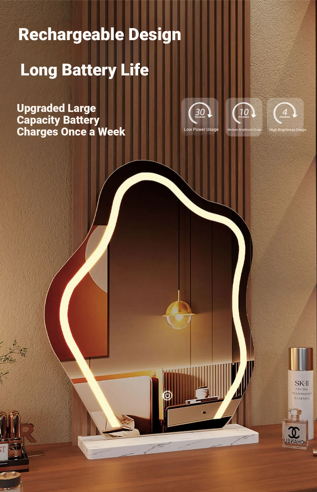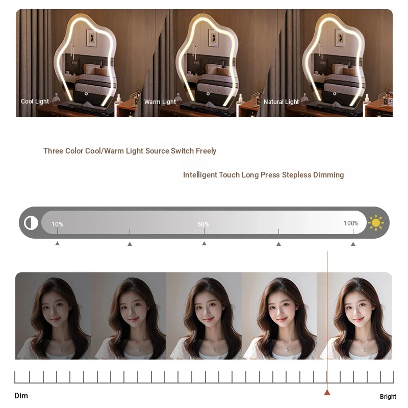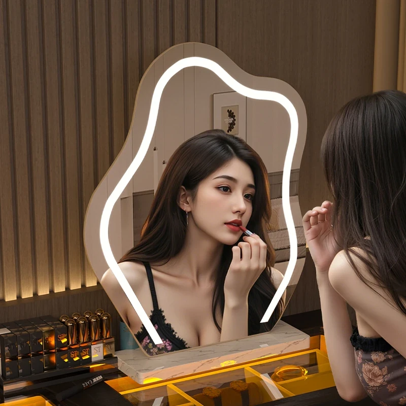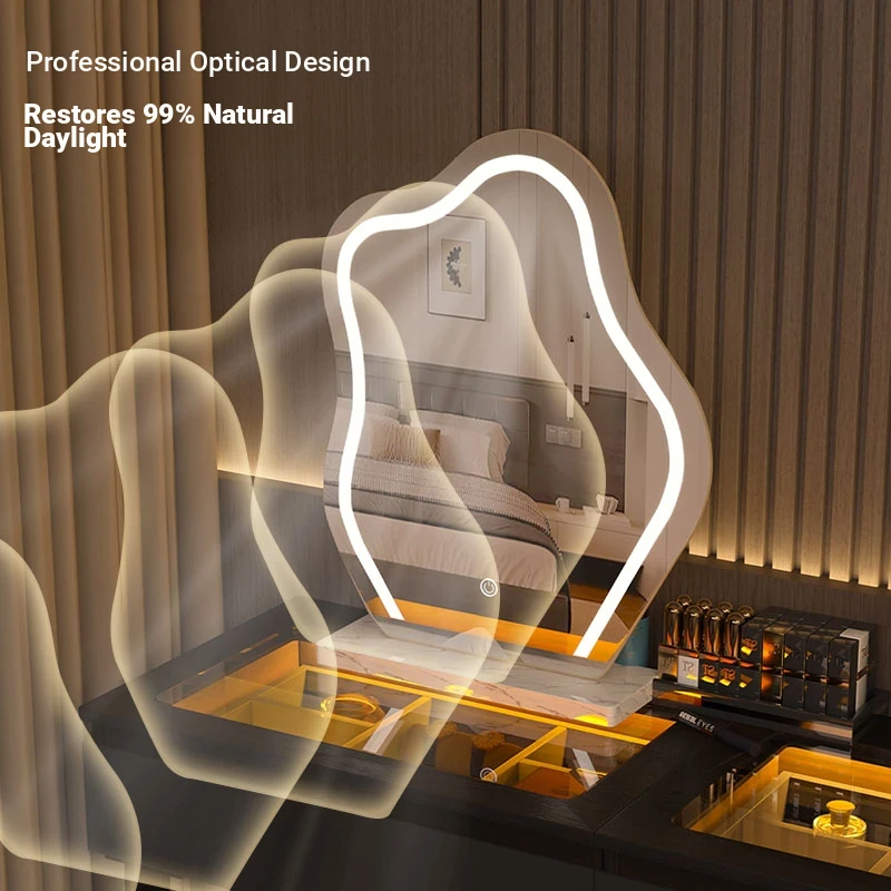 Cloud Vanity Mirror - Elegant Desktop Makeup Mirror with LED Lighting for Home Use, Smart Touch-Up Mirror for Your Bedroom and Dressing Room.