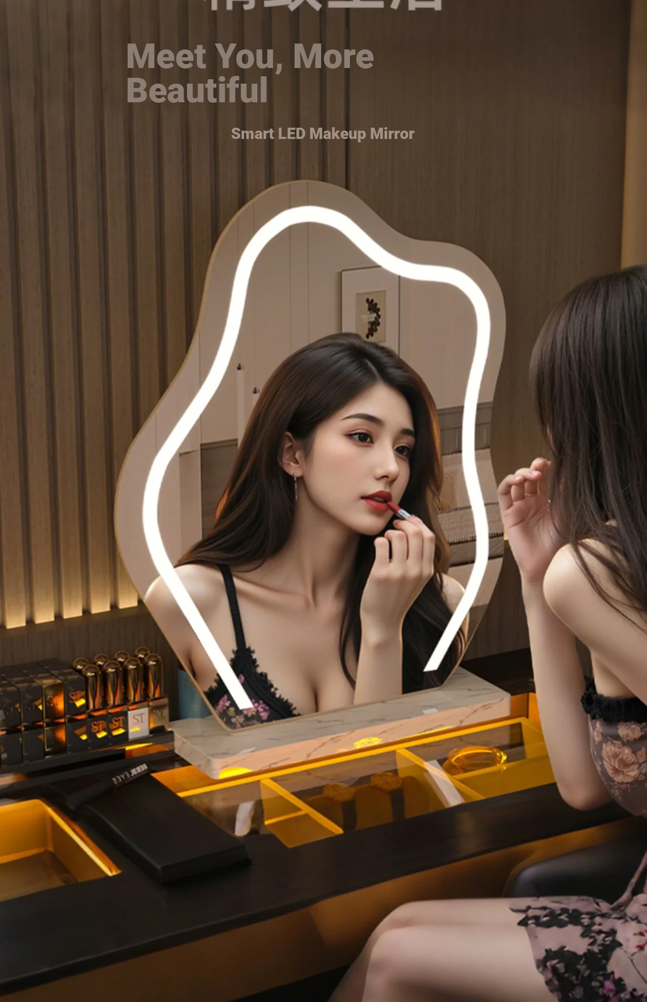 [Plug-in] large smart mirror 45*56 warm White (natural marble⭐Stepless diining)