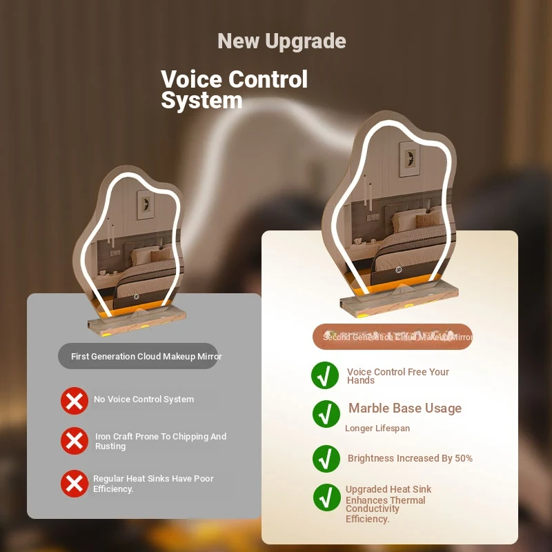 Cloud Vanity Mirror with LED Lights - 2025 New Luxury Desktop Makeup Mirror with Smart Voice Control for Home Use