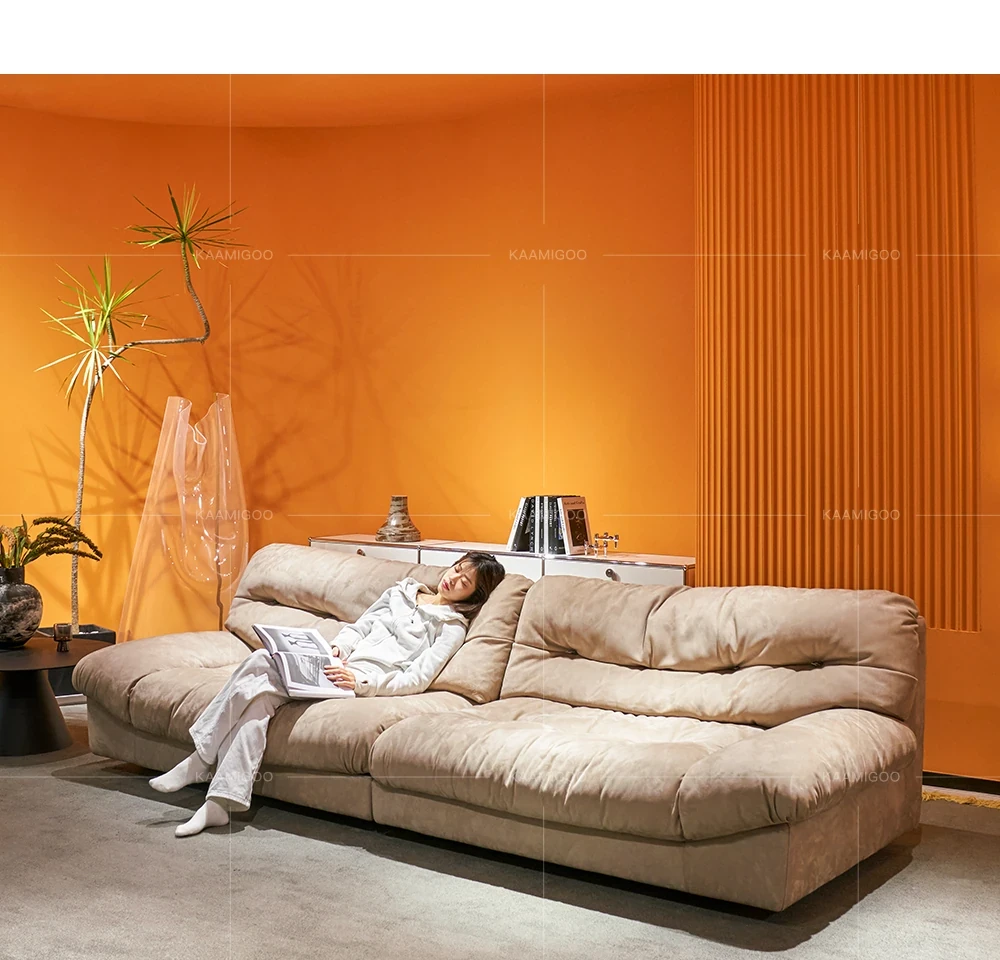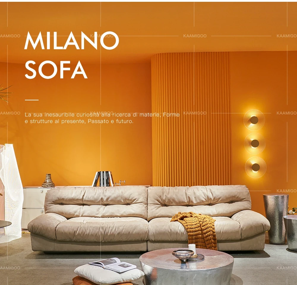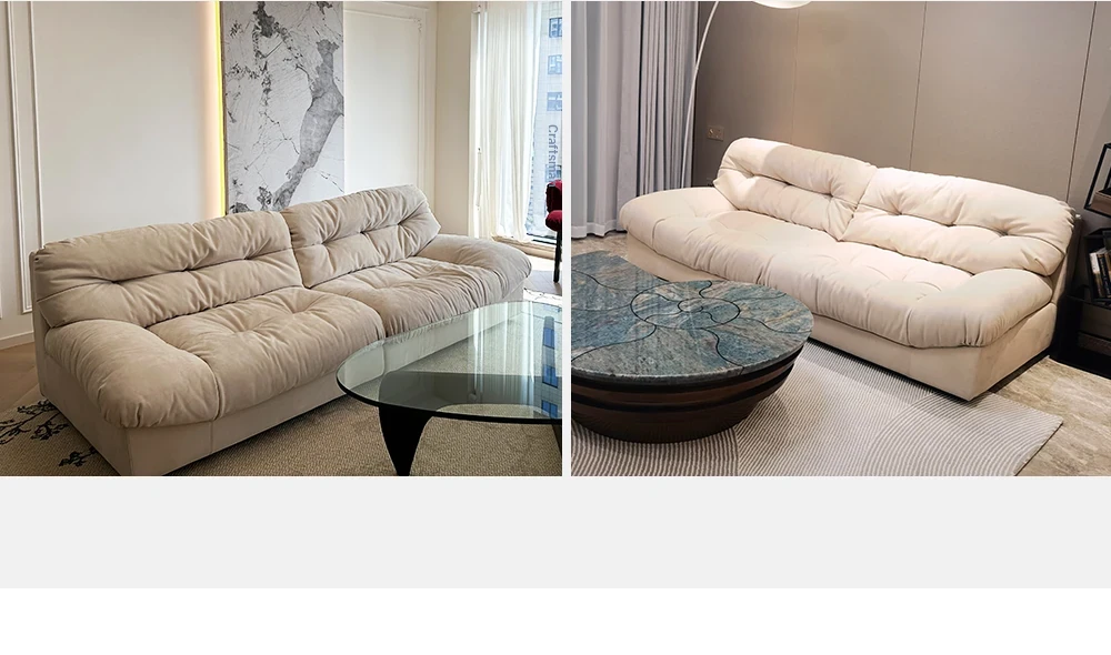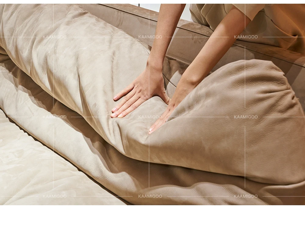 ComoGó Italian Milano Cloud Genuine Leather Sofa – Designer Light Luxury Suede Sofa for Living Room