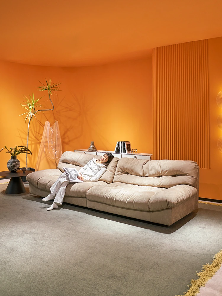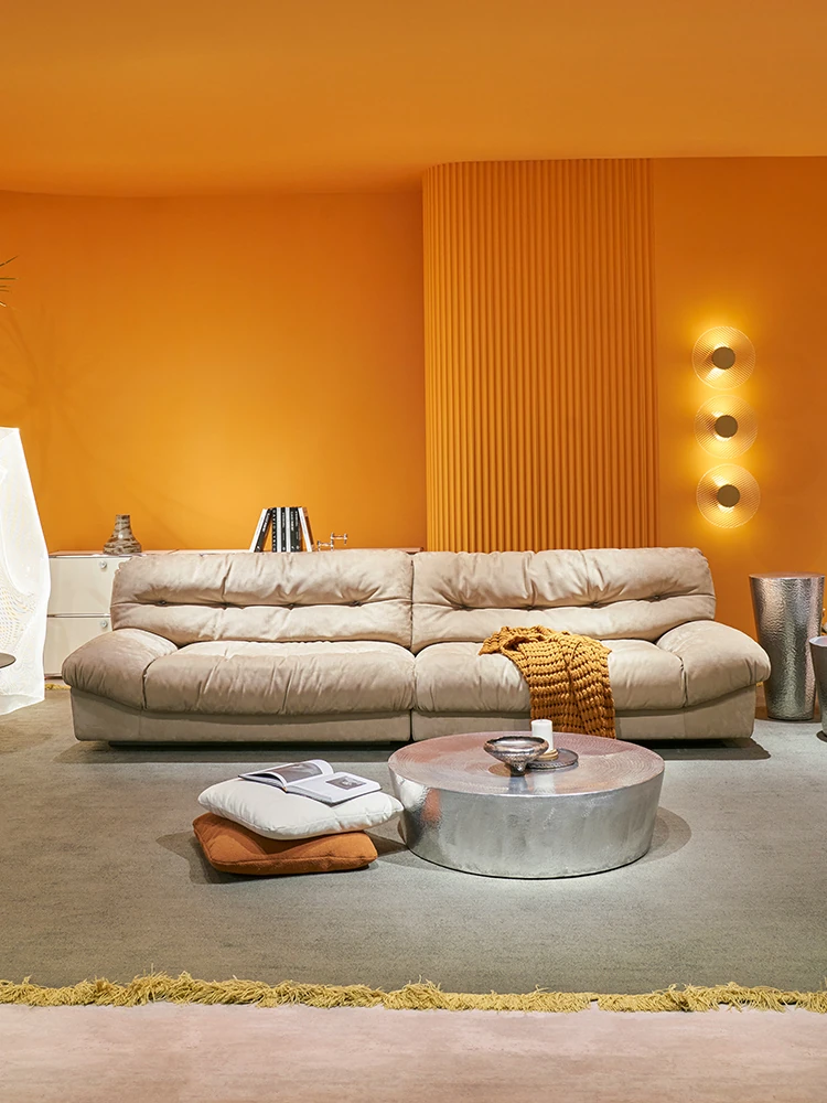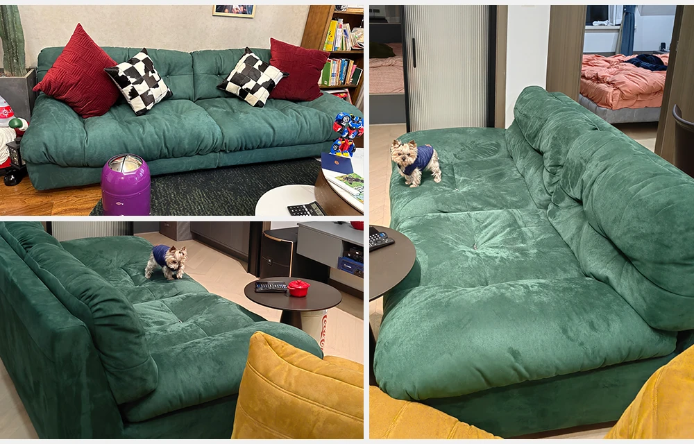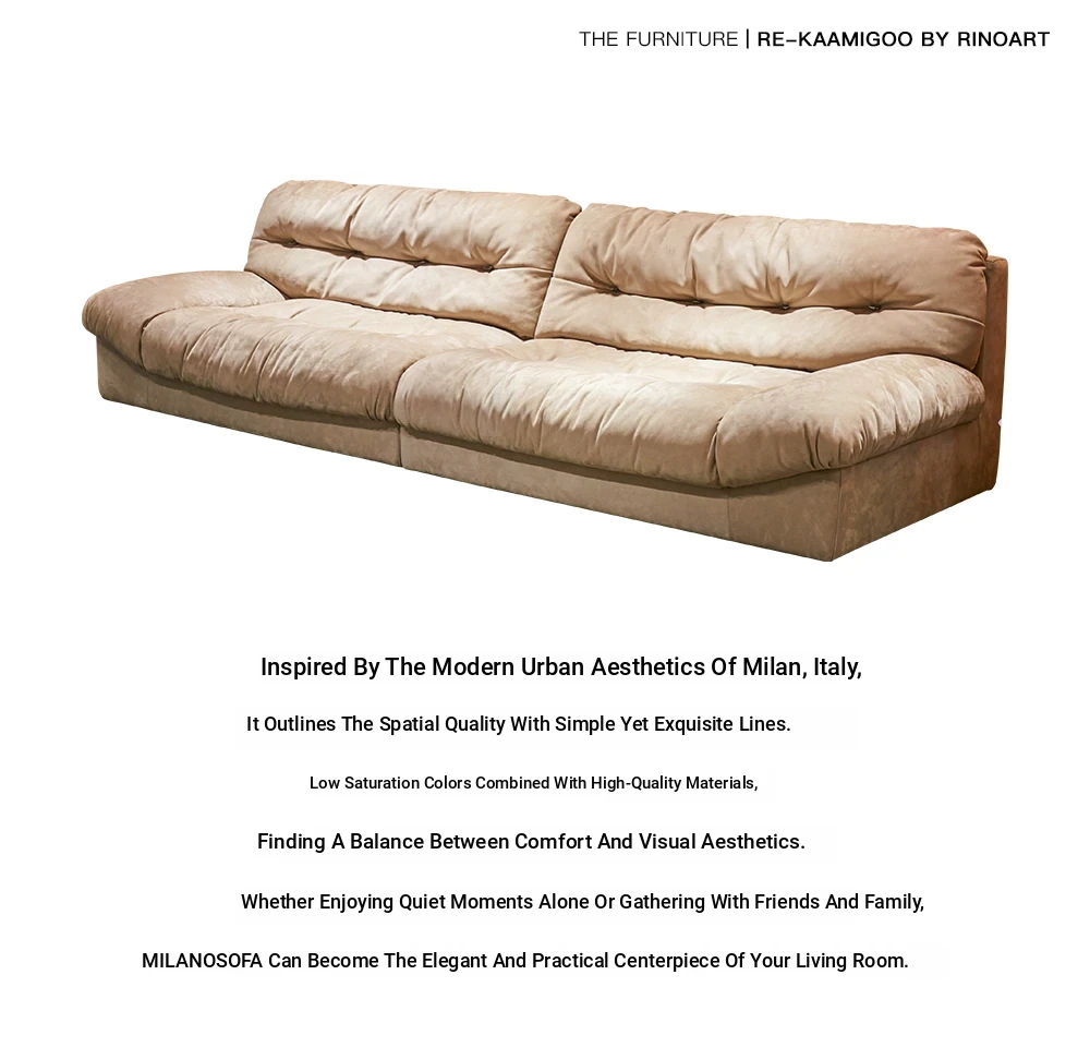 ComoGó Italian Milano Cloud Genuine Leather Sofa – Designer Light Luxury Suede Sofa for Living Room