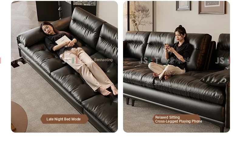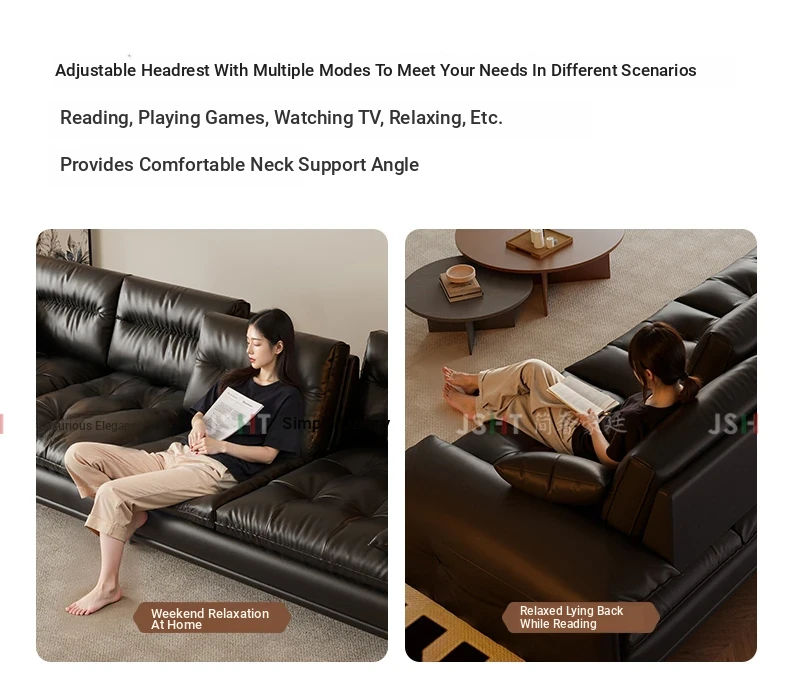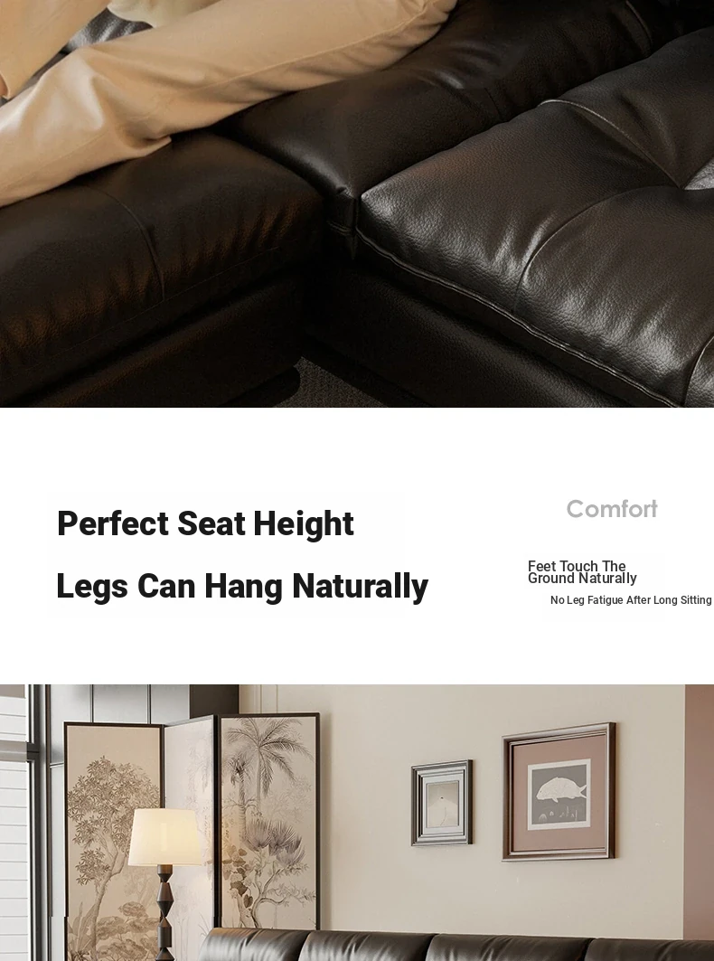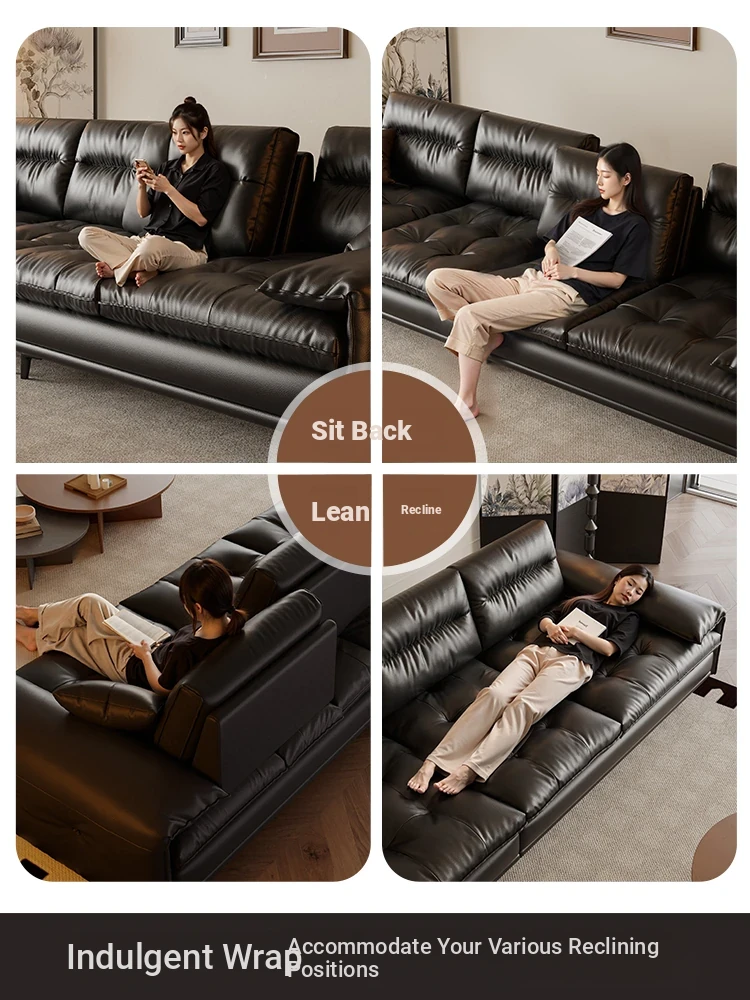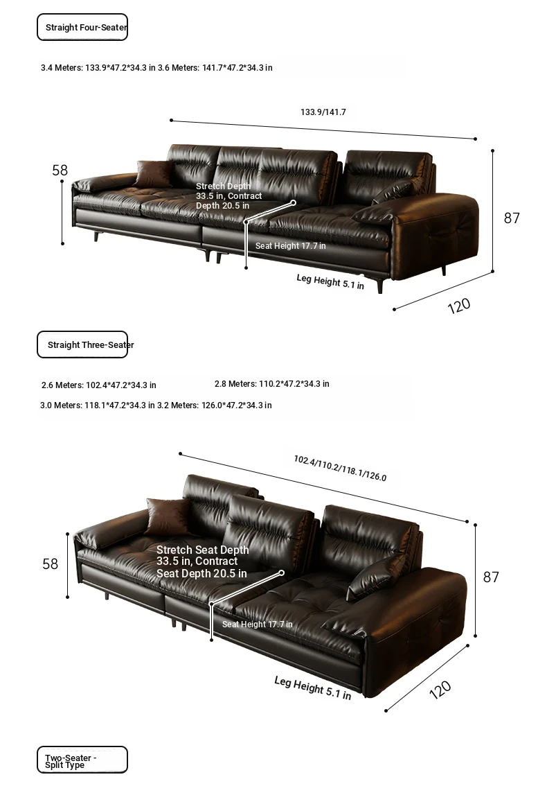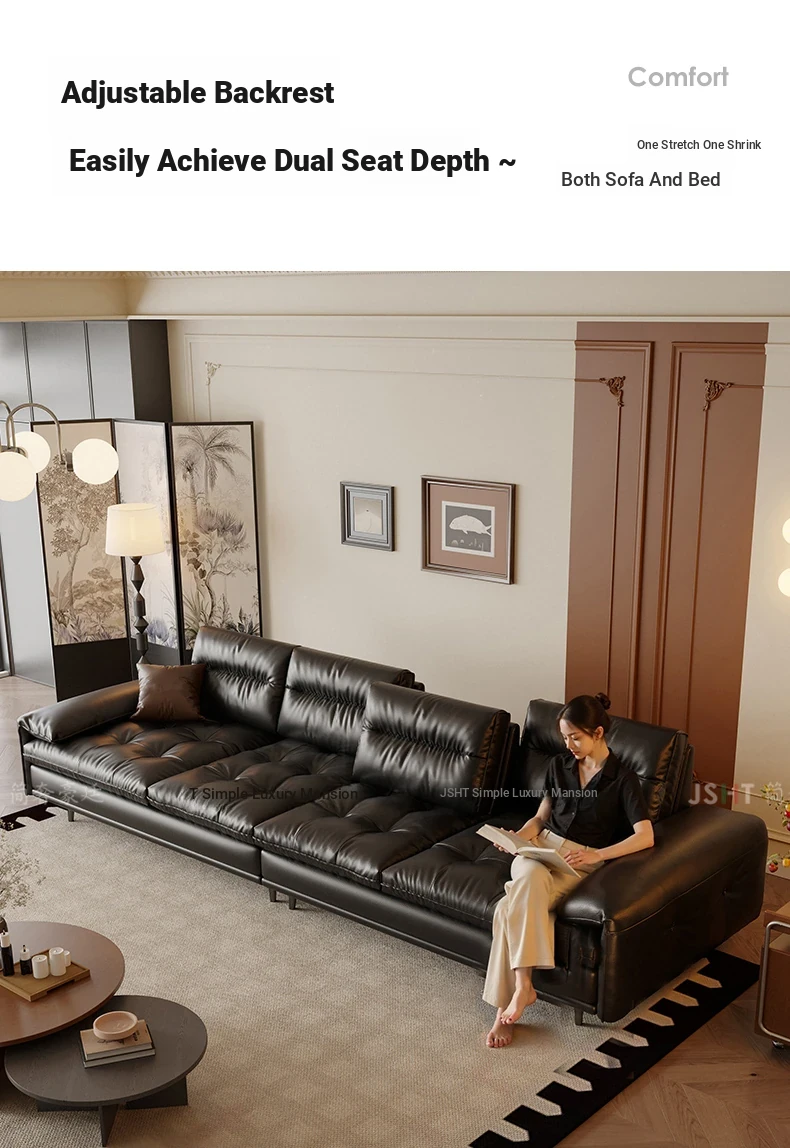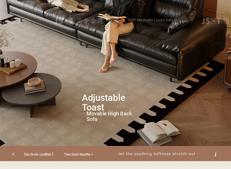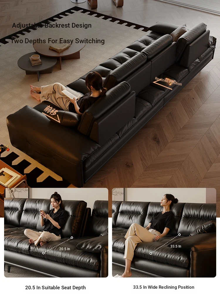 Designer Adjustable High-Back Sofa for Living Room - Extra Wide Seat Depth, 3m Straight Leg, Genuine Leather Sailboat Style