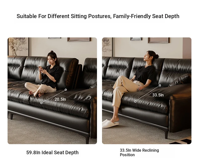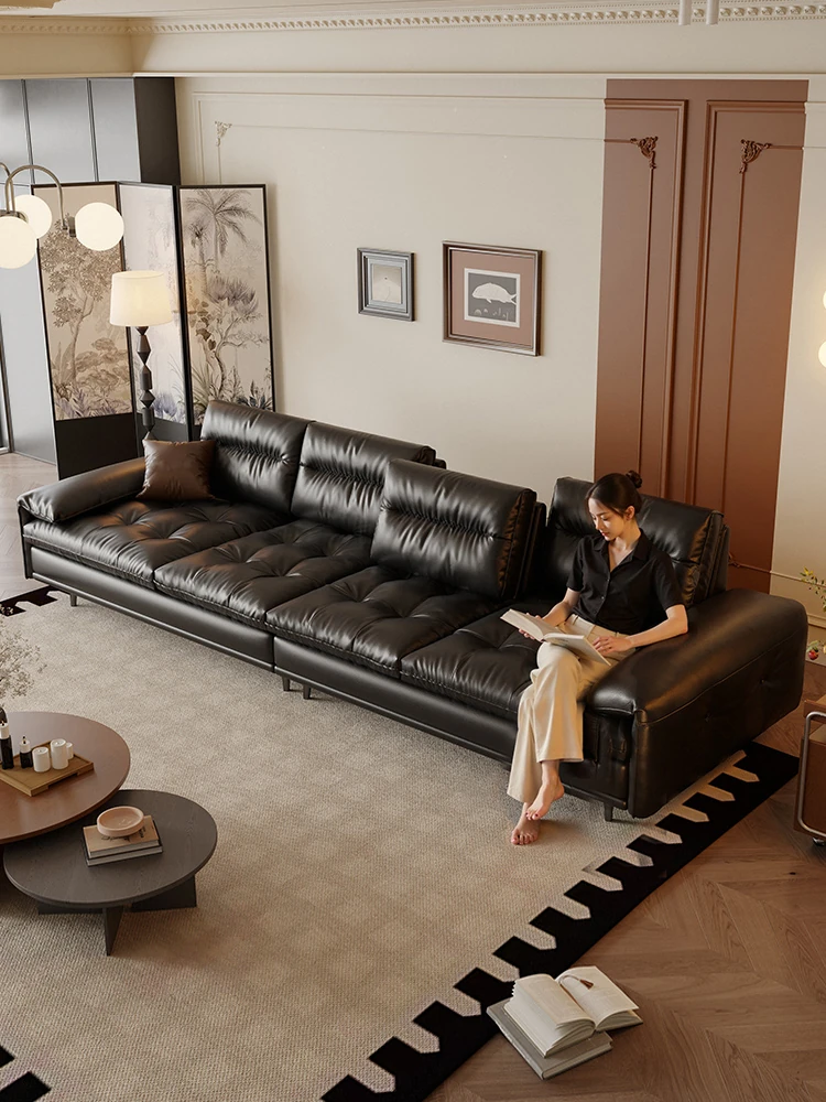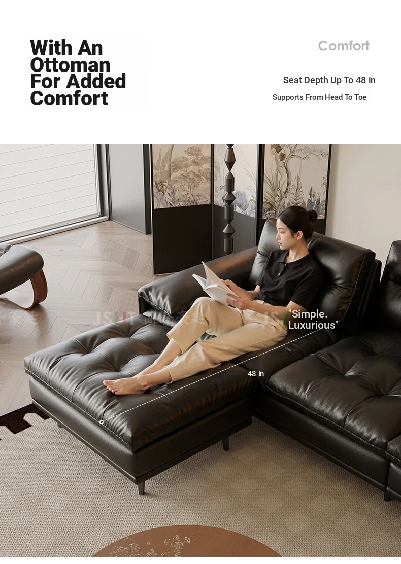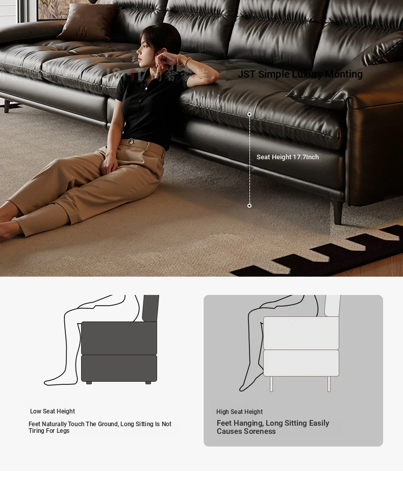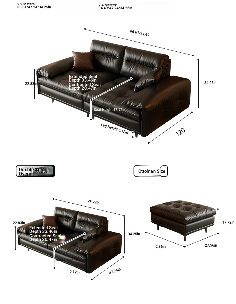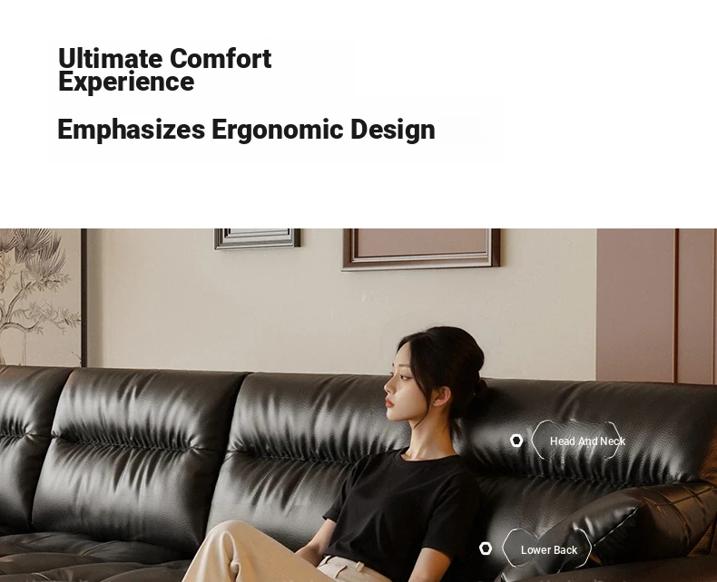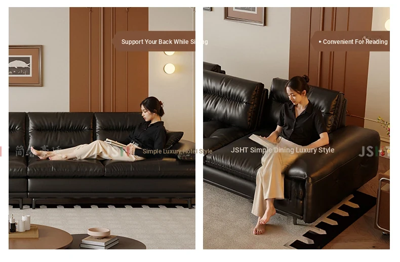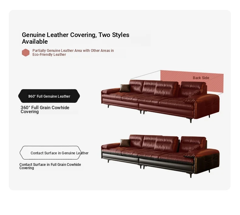Designer Adjustable High-Back Sofa for Living Room - Extra Wide Seat Depth, 3m Straight Leg, Genuine Leather Sailboat Style