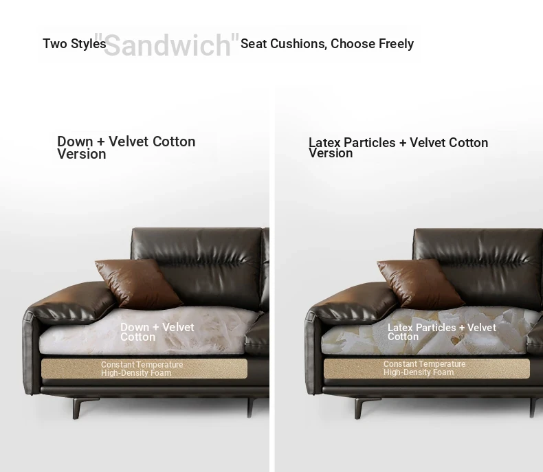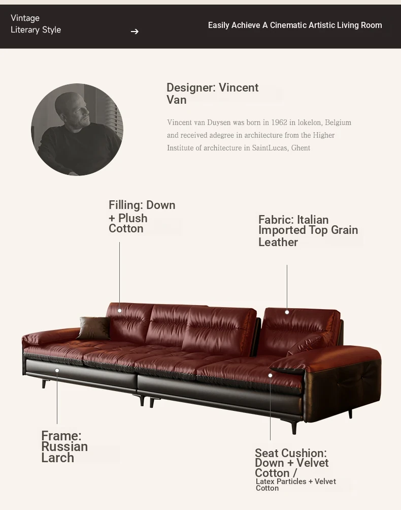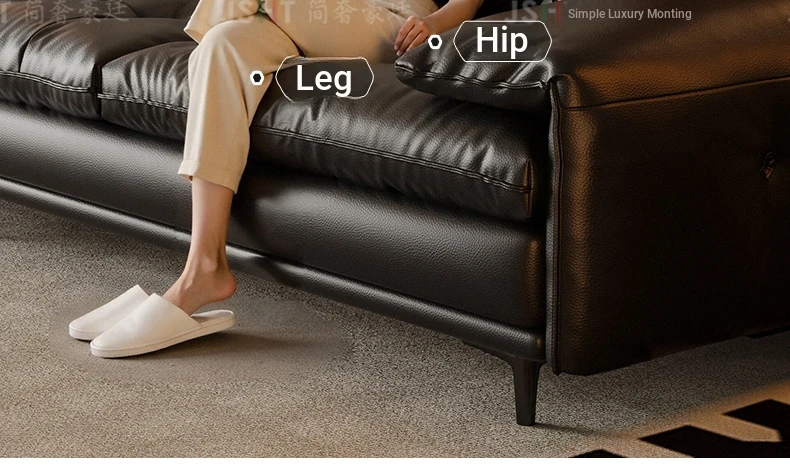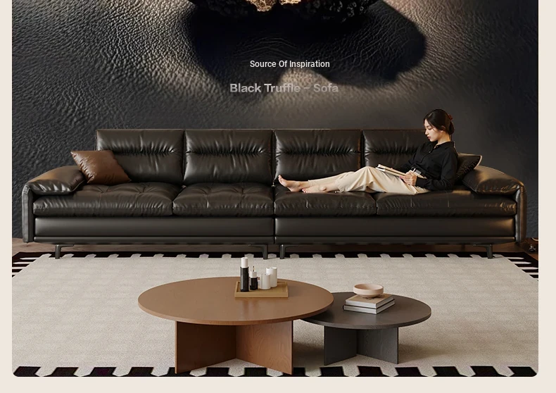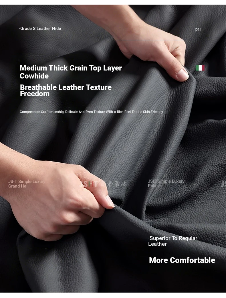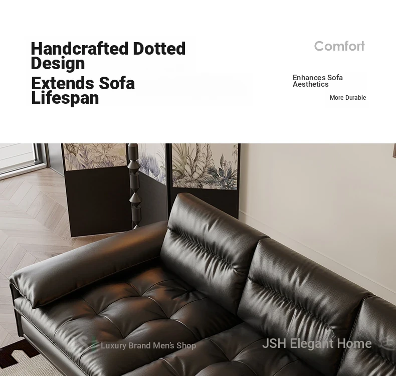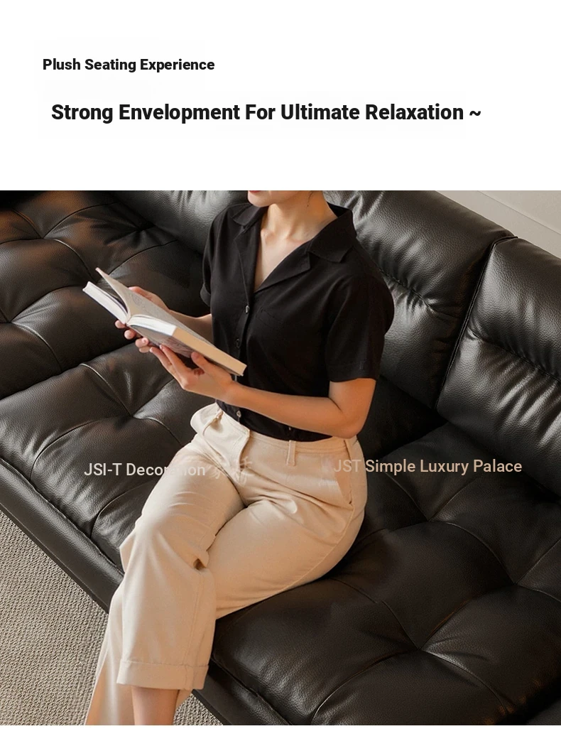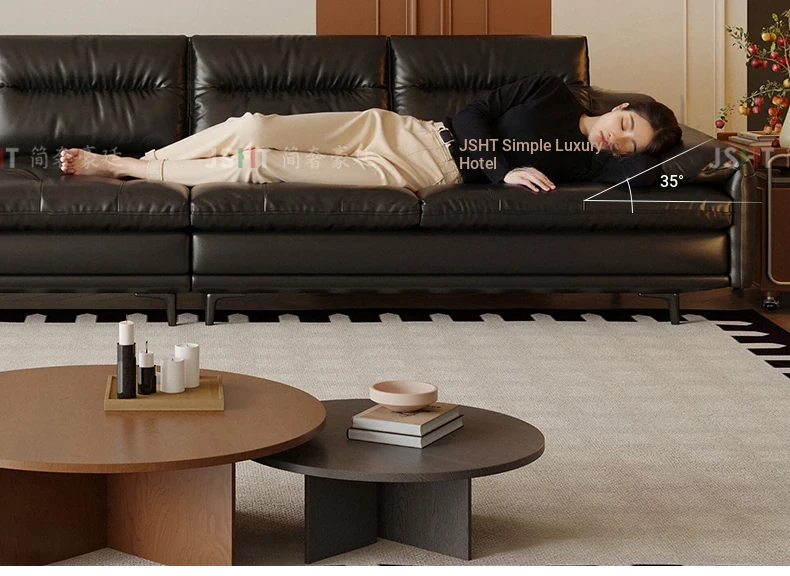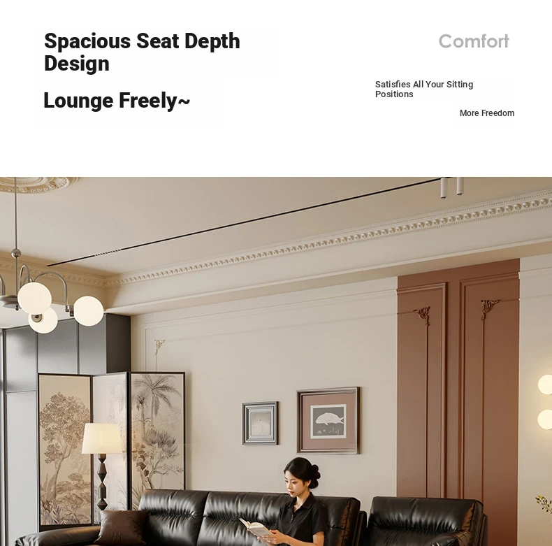 Designer Adjustable High-Back Sofa for Living Room - Extra Wide Seat Depth, 3m Straight Leg, Genuine Leather Sailboat Style